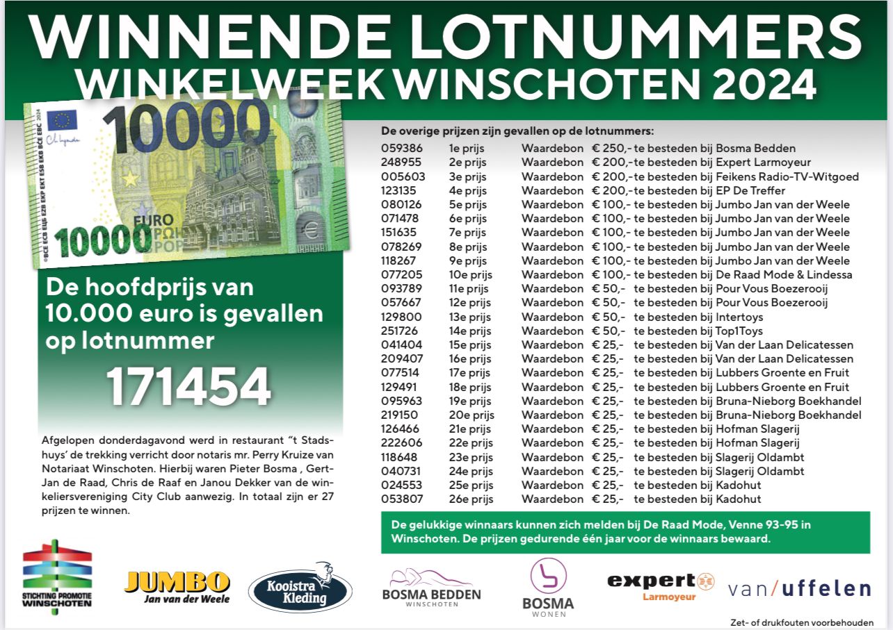 Winkelweek Winschoten 2024: Lotnummer 171454 wint hoofdprijs van €10.000!