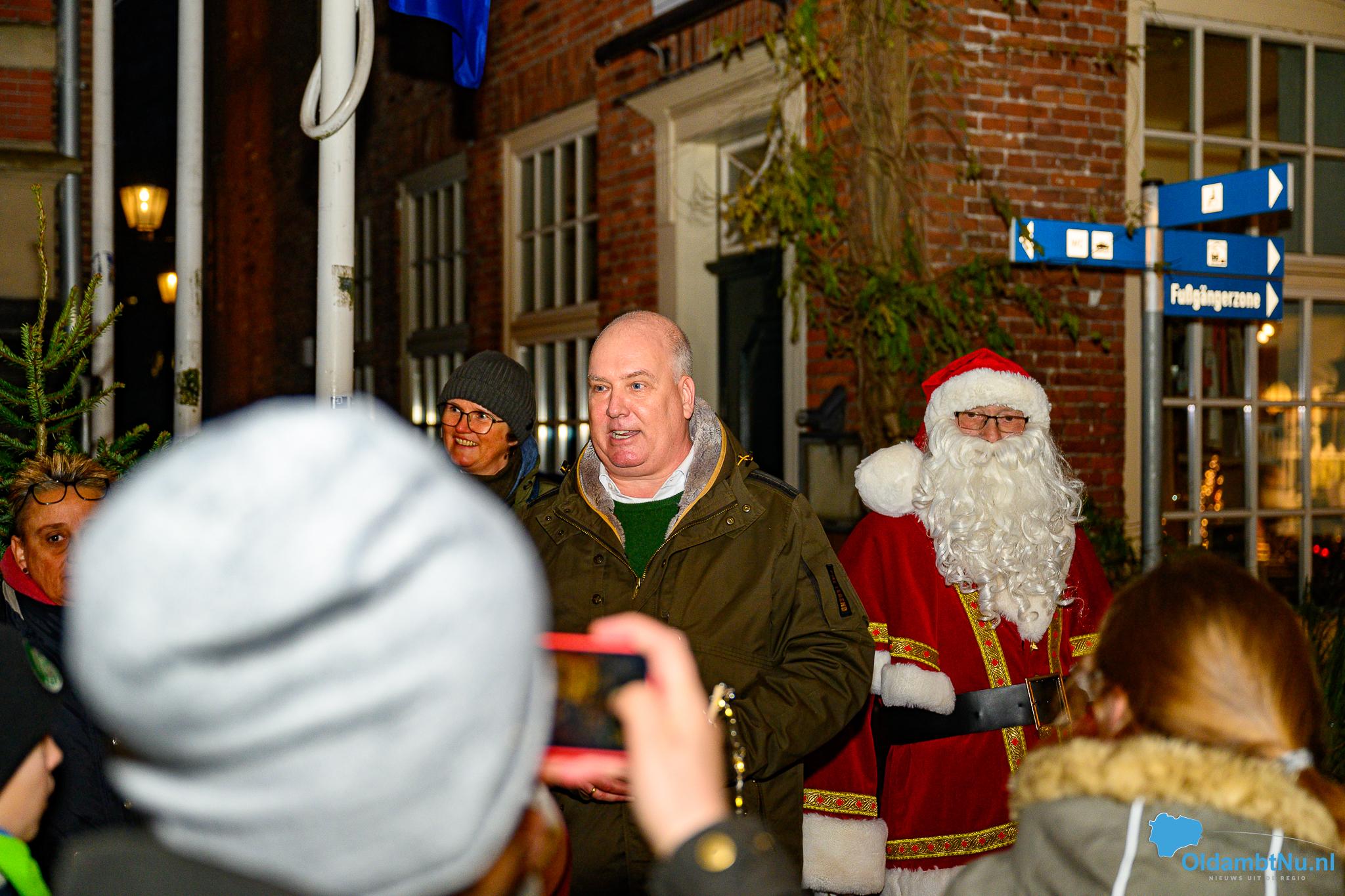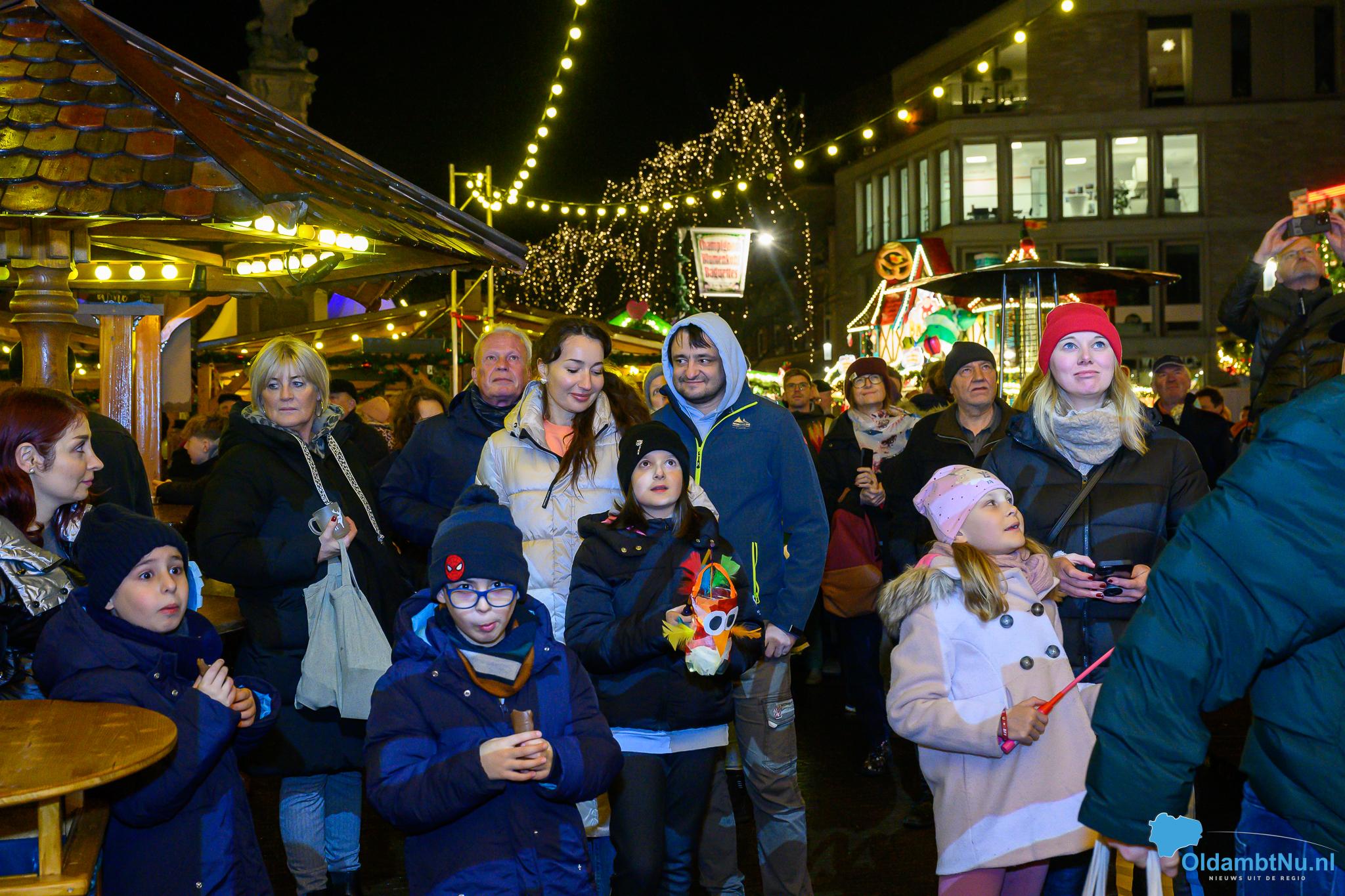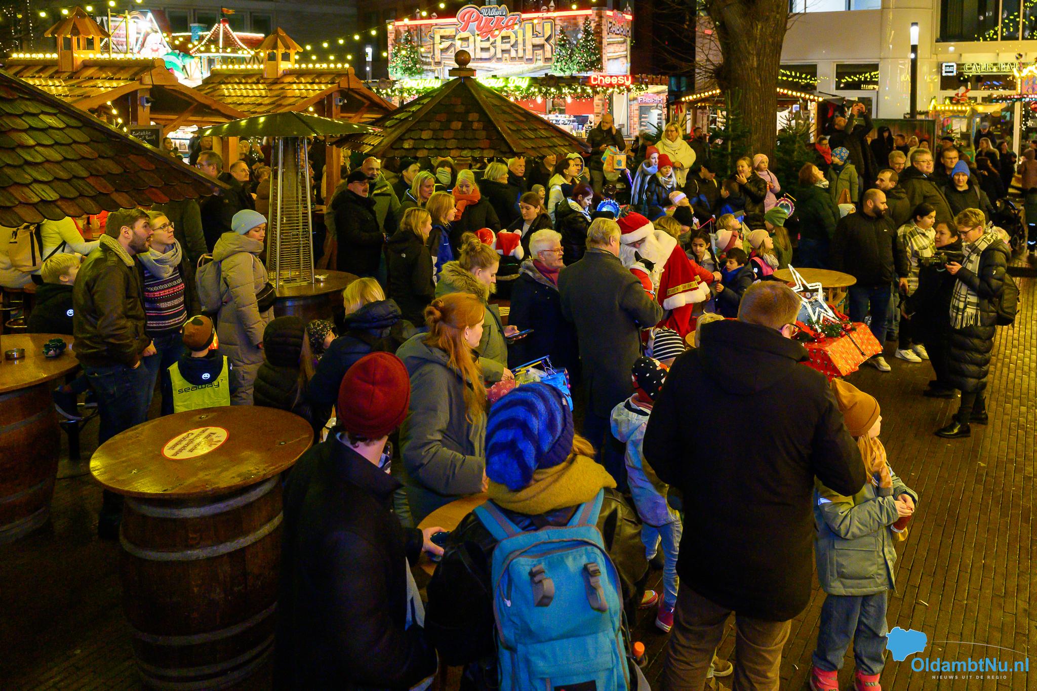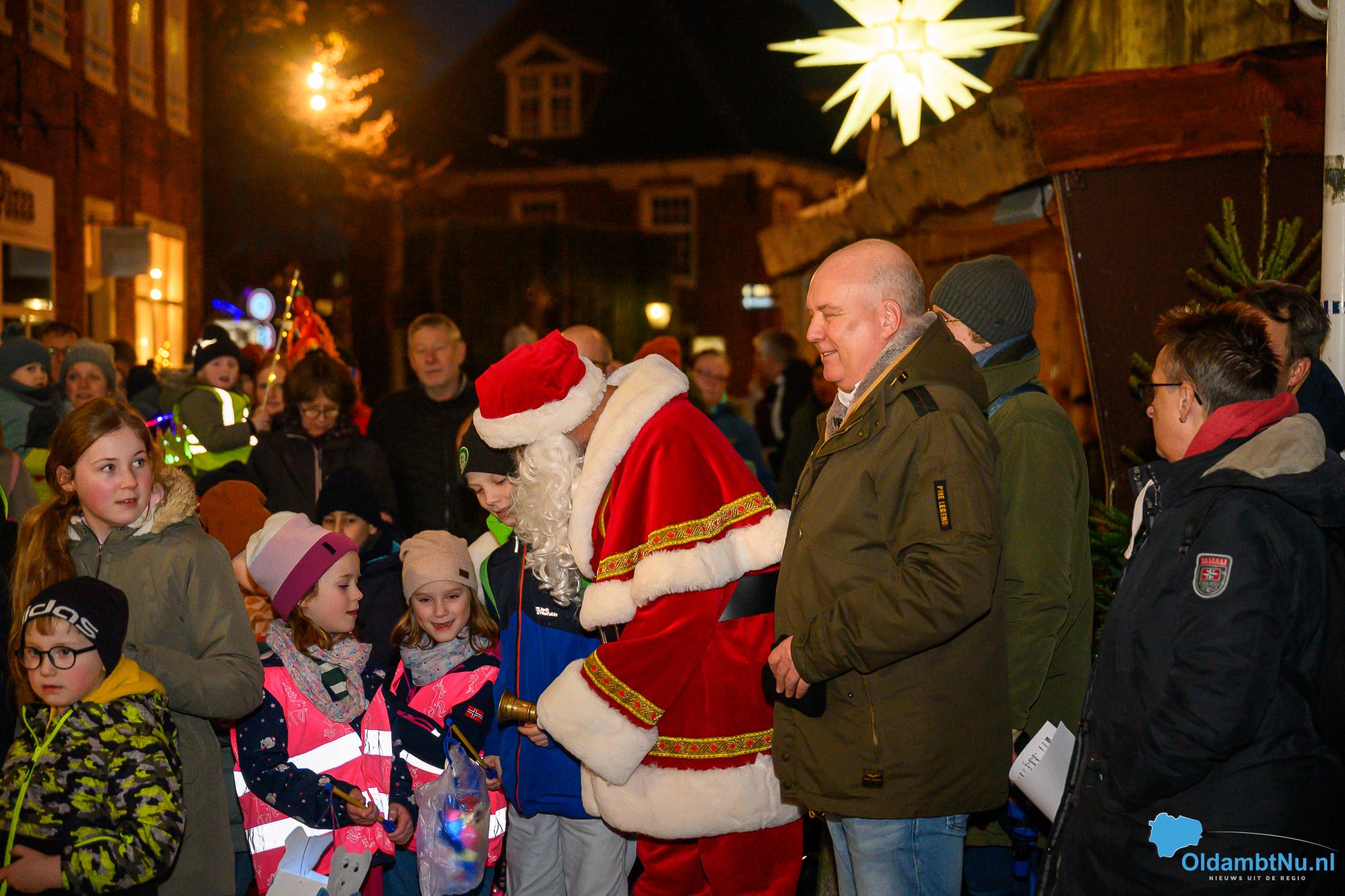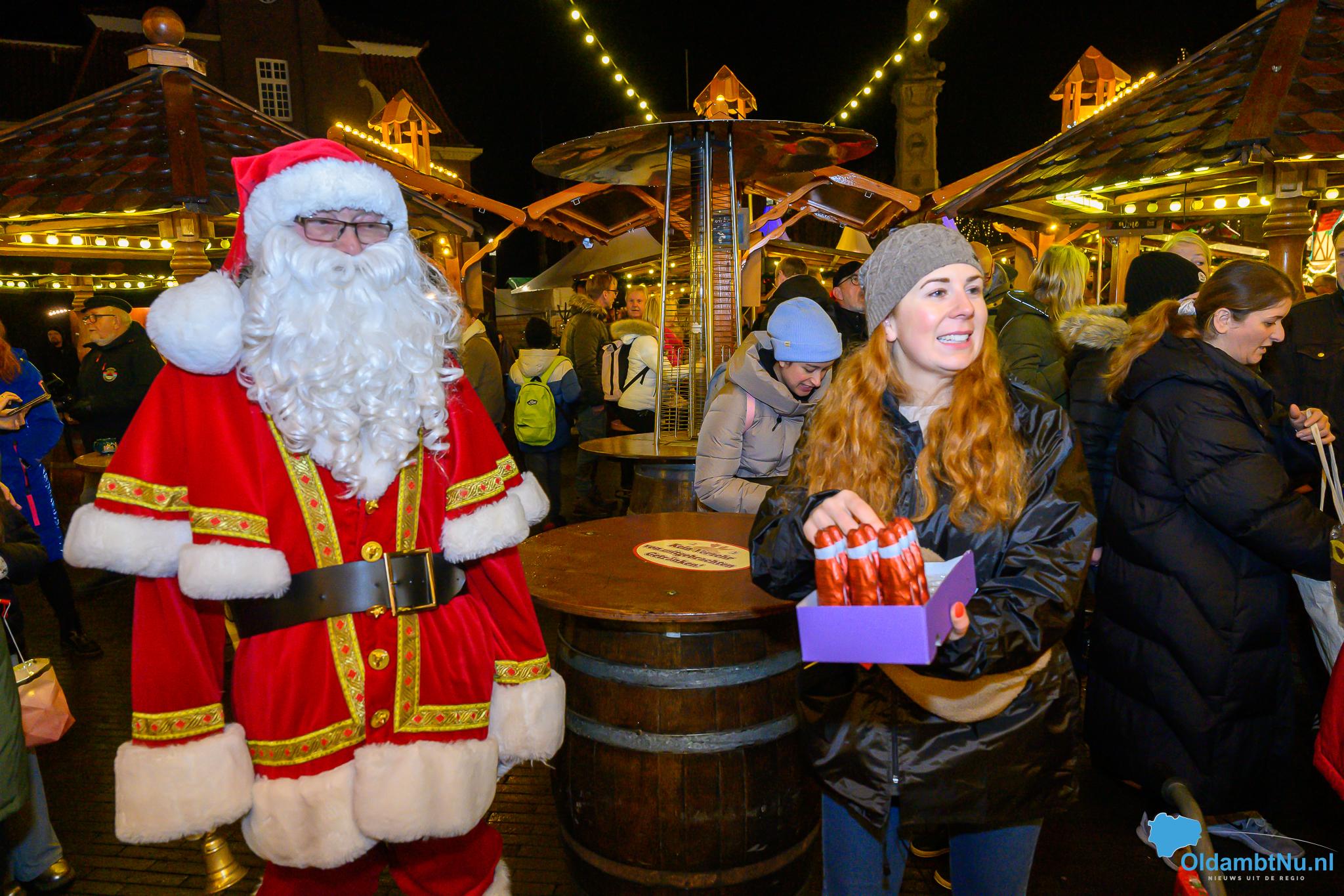 Na de stop bij de haven ging de stoet verder naar het centrale plein, waar de burgemeester een toespraak hield. Hij bedankte iedereen en vooral de vrijwilligers die dit weer voor elkaar hebben gekregen. En, dat de kerstmarkt als een van de mooiste van het noorden wordt beschouwt. Met een symbolische handeling werd de kerstmarkt officieel geopend, waarna alle kinderen werden verrast met een heerlijke chocolade kerstman.