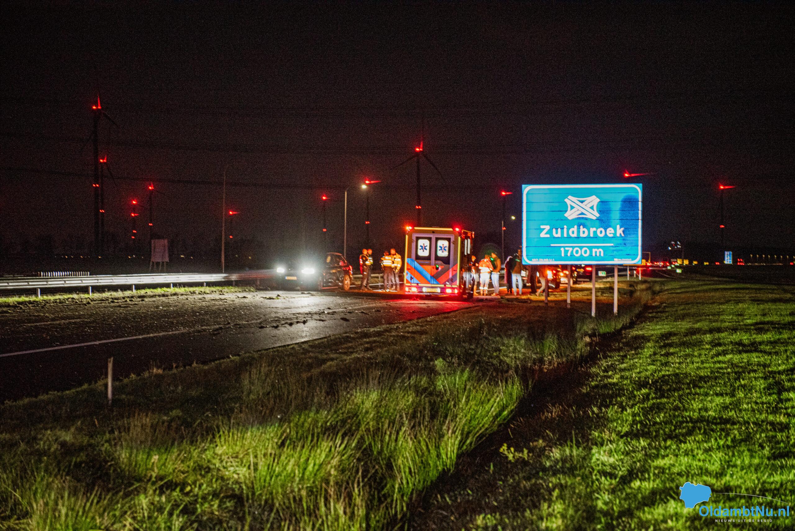 Scheemda – Zaterdagavond rond 23:00 uur werd de A7 tussen Scheemda en Zuidbroek afgesloten na een ongeval waarbij twee voertuigen betrokken waren. Het incident gebeurde toen een personenauto een klapband kreeg, de controle verloor en in botsing kwam met een ander voertuig op de naastgelegen rijstrook.