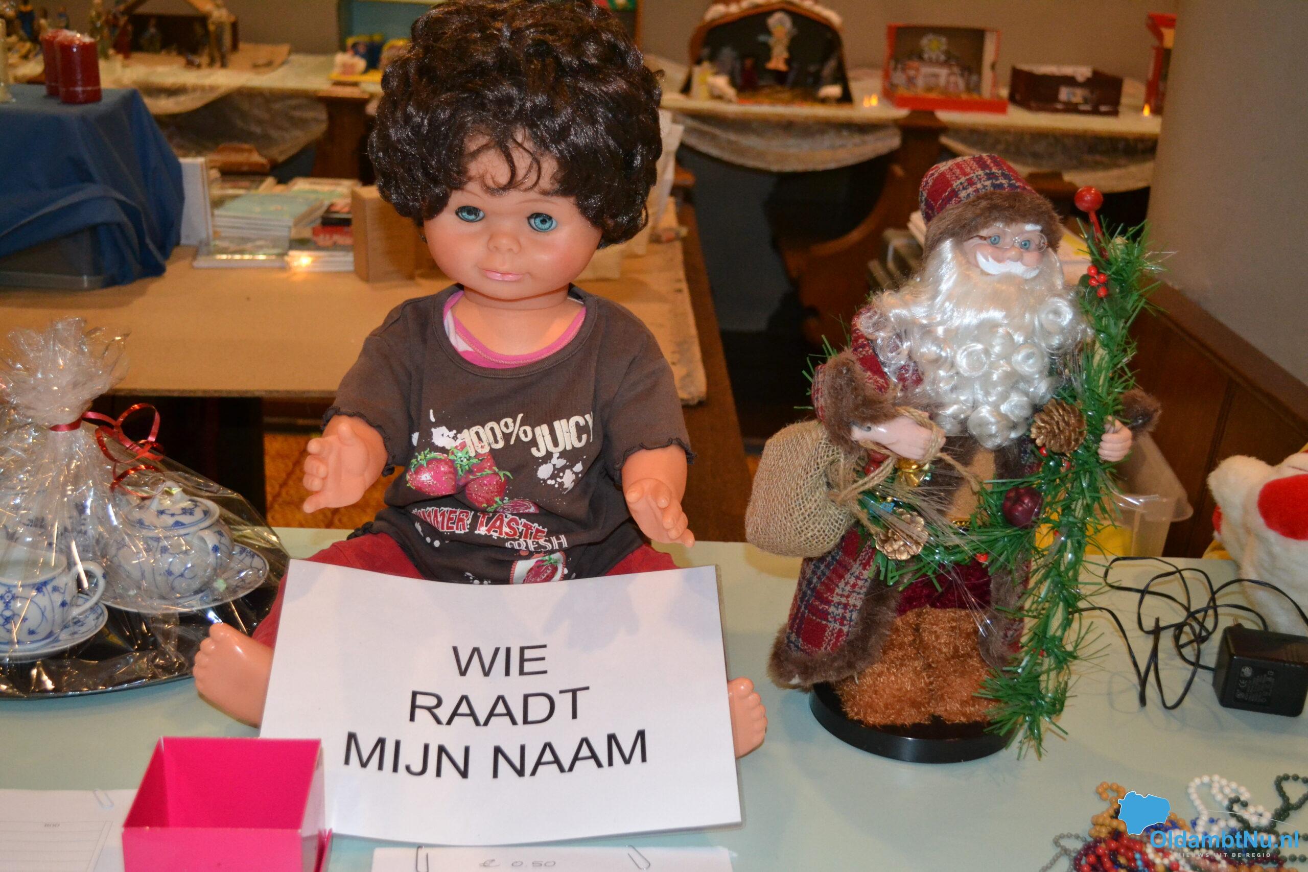 Ook daar ging de markt verder, met een grote verzameling boeken en allerlei andere handgemaakte versierselen voor in de kerstboom. Heel veel kerststallen stonden er uitgestald en veel kinderen bleven staan voor de grote stal voor in de kerk, met kindje Jezus warm toegedekt in een kribbe. De opbrengst van deze markt is bedoeld voor isolatie en renovatie van de pastorie.