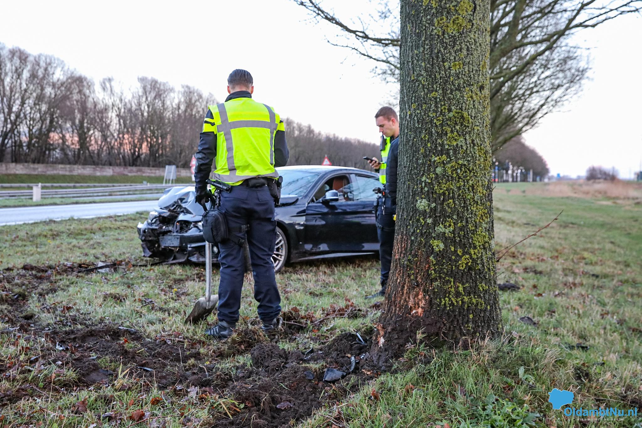 De BMW met achterwielaandrijving raakte in een slip en kwam tegen een boom tot stilstand. Politie en Rijkswaterstaat waren snel ter plaatse om de situatie te beveiligen.