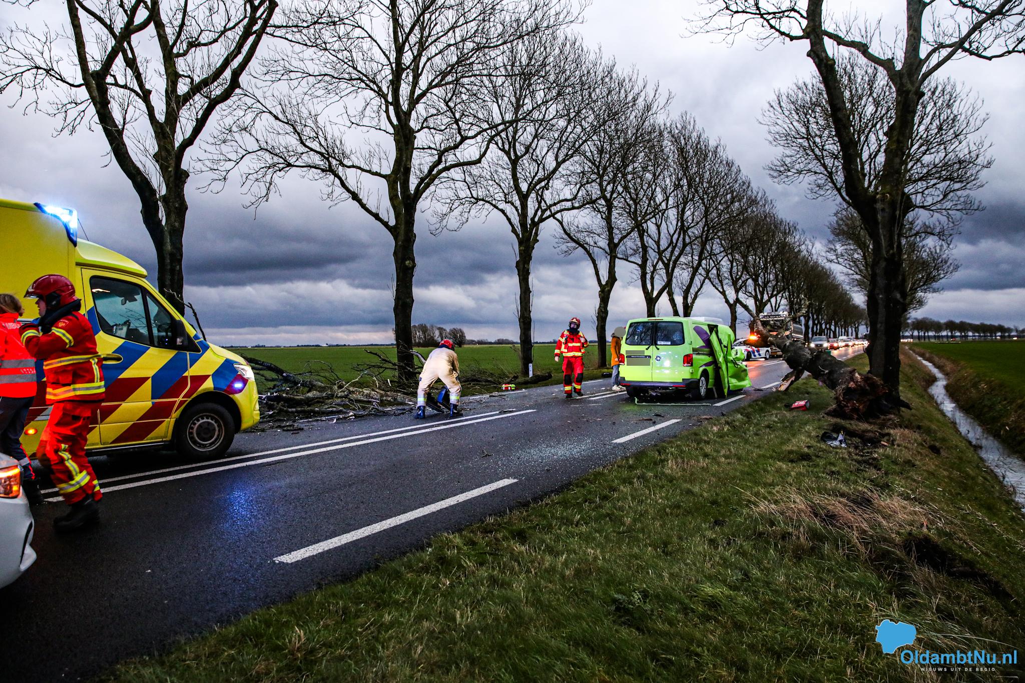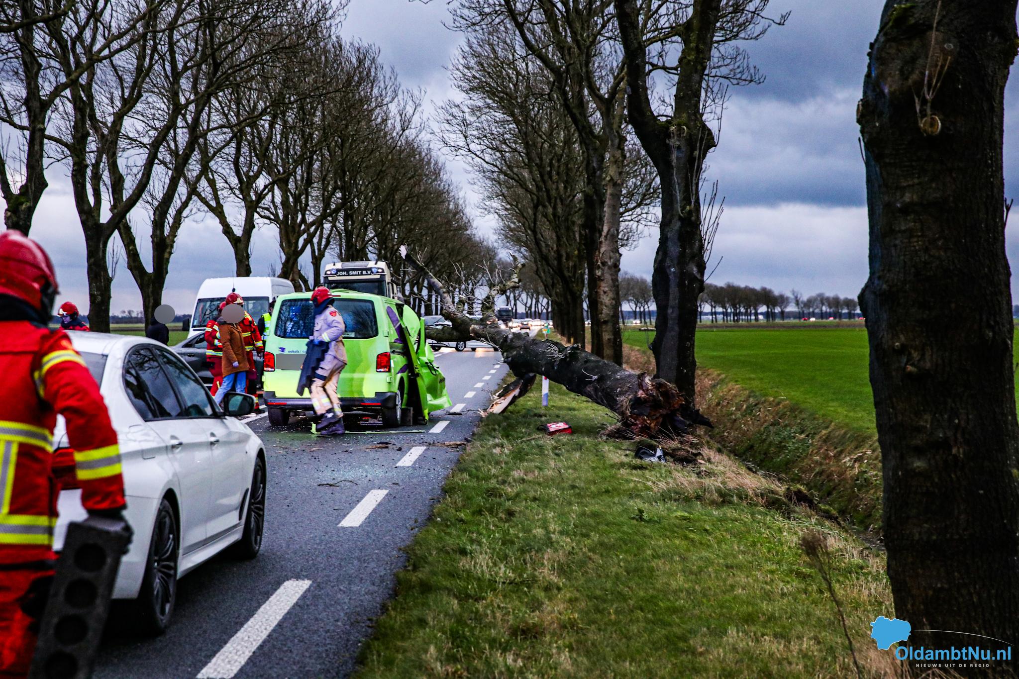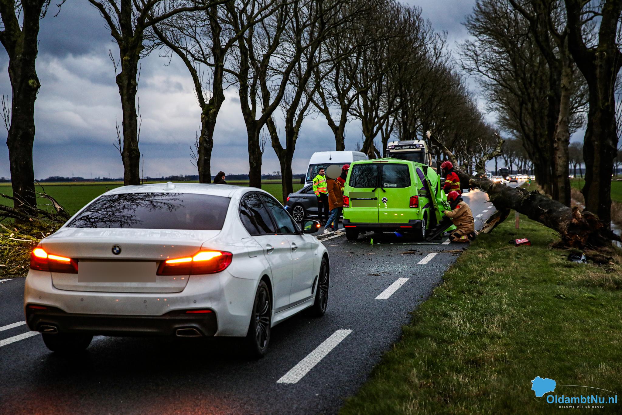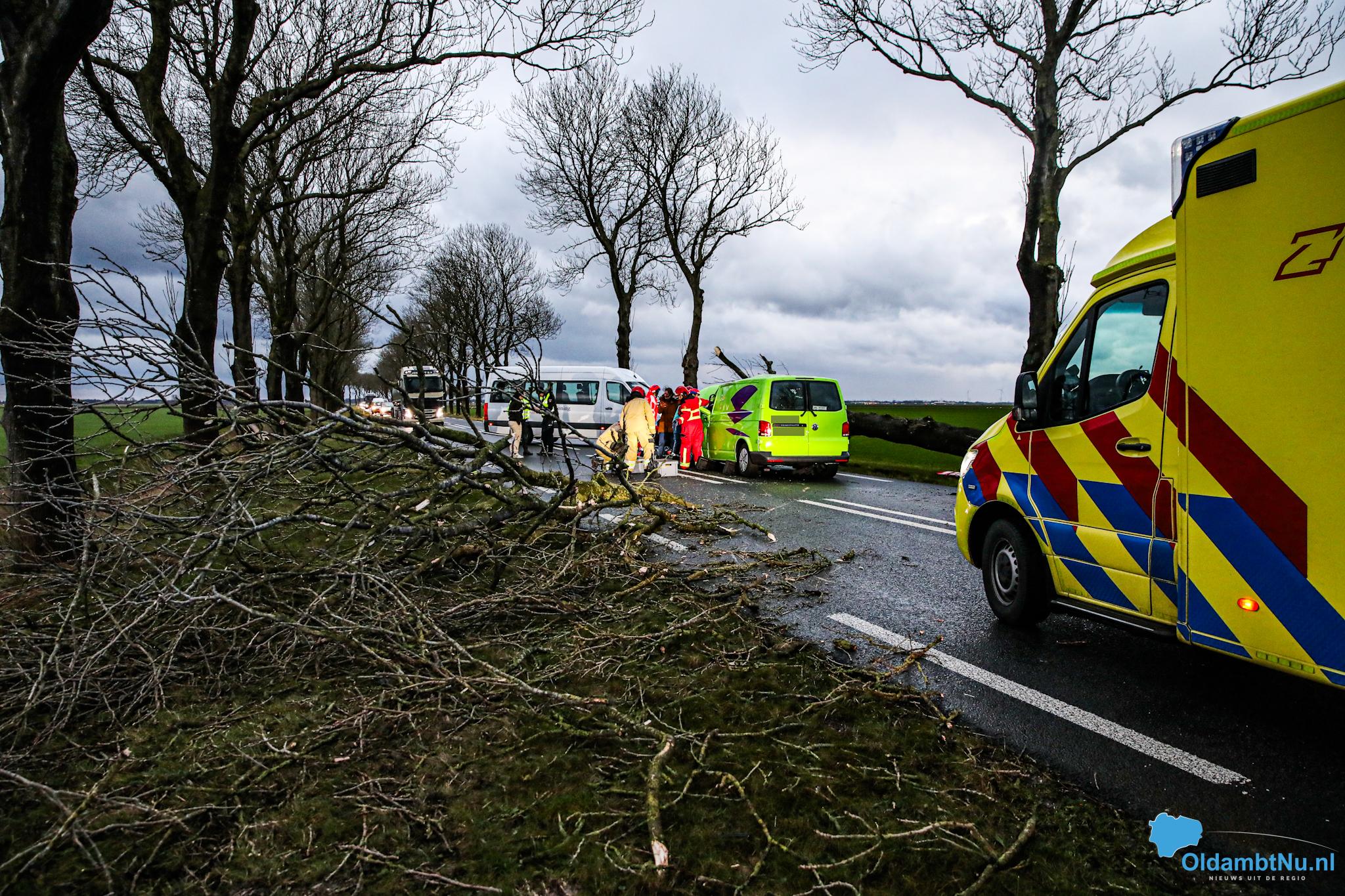 Nieuwolda – Op de Gereweg (N362) bij Nieuwolda, is maandagmiddag rond 16:15 uur een aanrijding ontstaan. Een boom waaide door de harde storm tegen een rijdende auto, met een gewonde als gevolg.