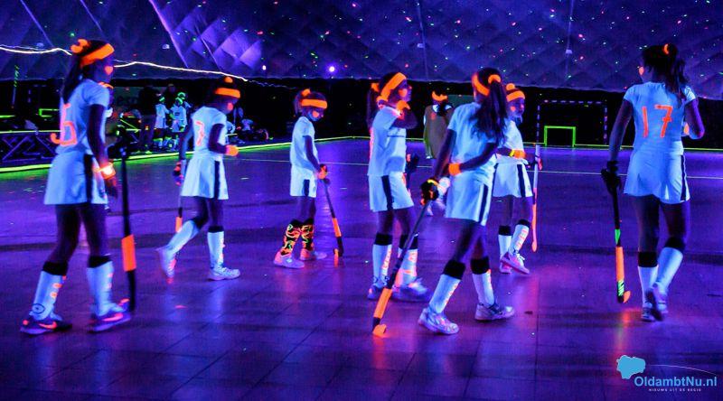 – Glow-in-the-dark zaalhockey met lichtgevende materialen