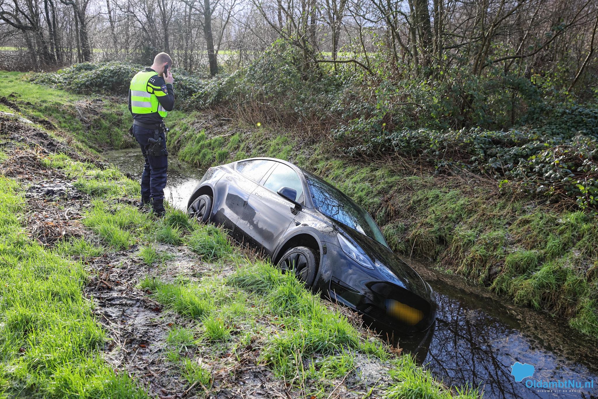 Scheemda – Een splinternieuwe Tesla, aangeschaft op 24 december 2024, is vrijdagochtend rond 11.00 uur in een sloot terechtgekomen aan de Kanaalweg in Scheemda. De bestuurder verloor de controle over het voertuig in een flauwe bocht door de gladheid.