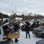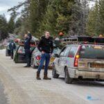 Ergens halverwege de route hadden ze een stop ingepland. Hier klaarde de lucht op en werd het weer droog. Regen was daar de hele dag ook nog niet geweest. “Alle uitklapkeukens werden weer voor de dag getoverd, zo werd er in 15 minuten weer een gigantisch lopend buffet in elkaar getoverd. Geweldig. Inmiddels aangekomen op de grens van Noorwegen. Hier ook traditiegetrouw een stop met borreltje!”, aldus Raymond.