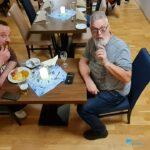 Eenmaal bij het hotel hebben de deelnemers de route voor de volgende dag opgehaald. Gauw een hapje eten met de hele club. “Pilsje, borreltje, bedtijd!”