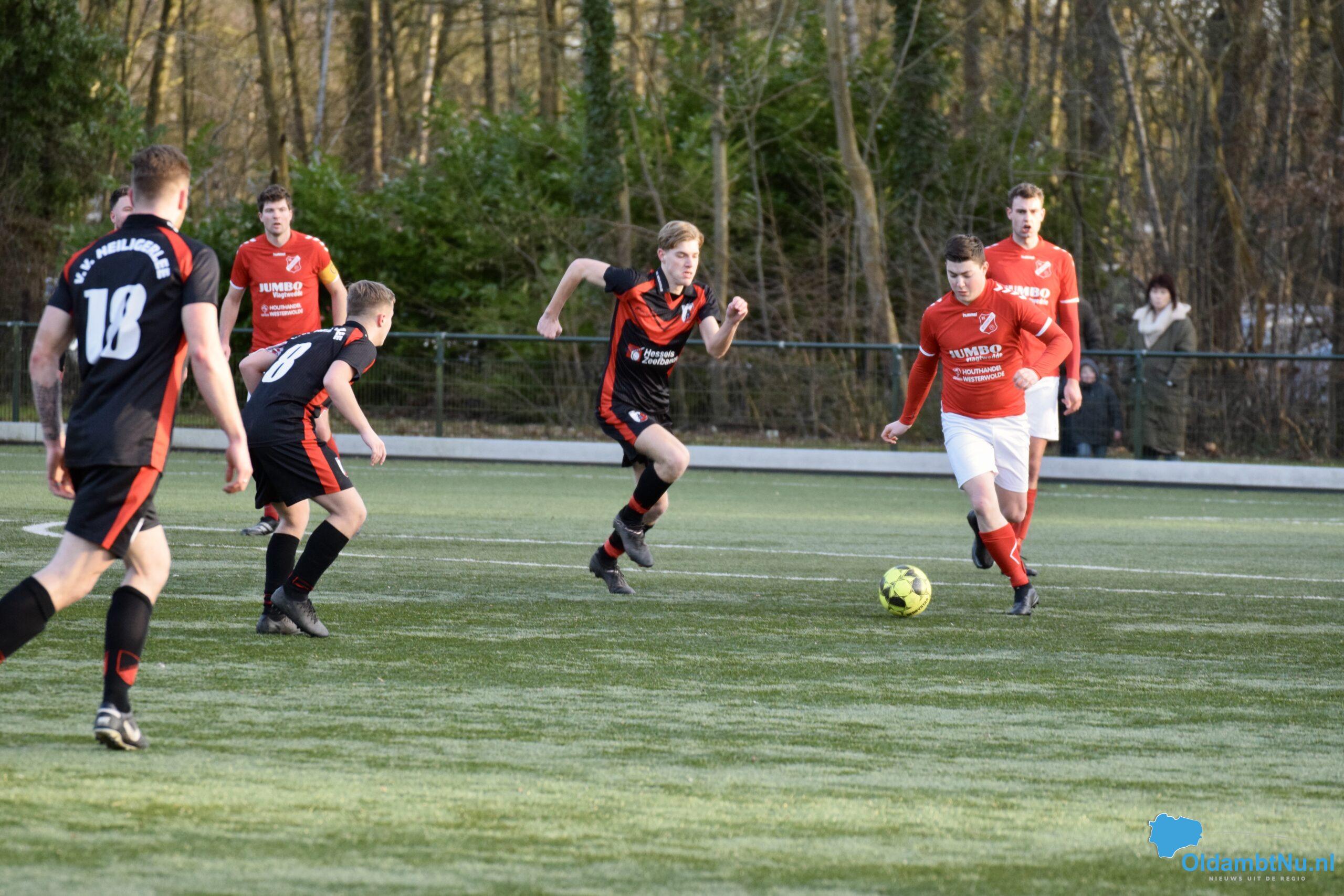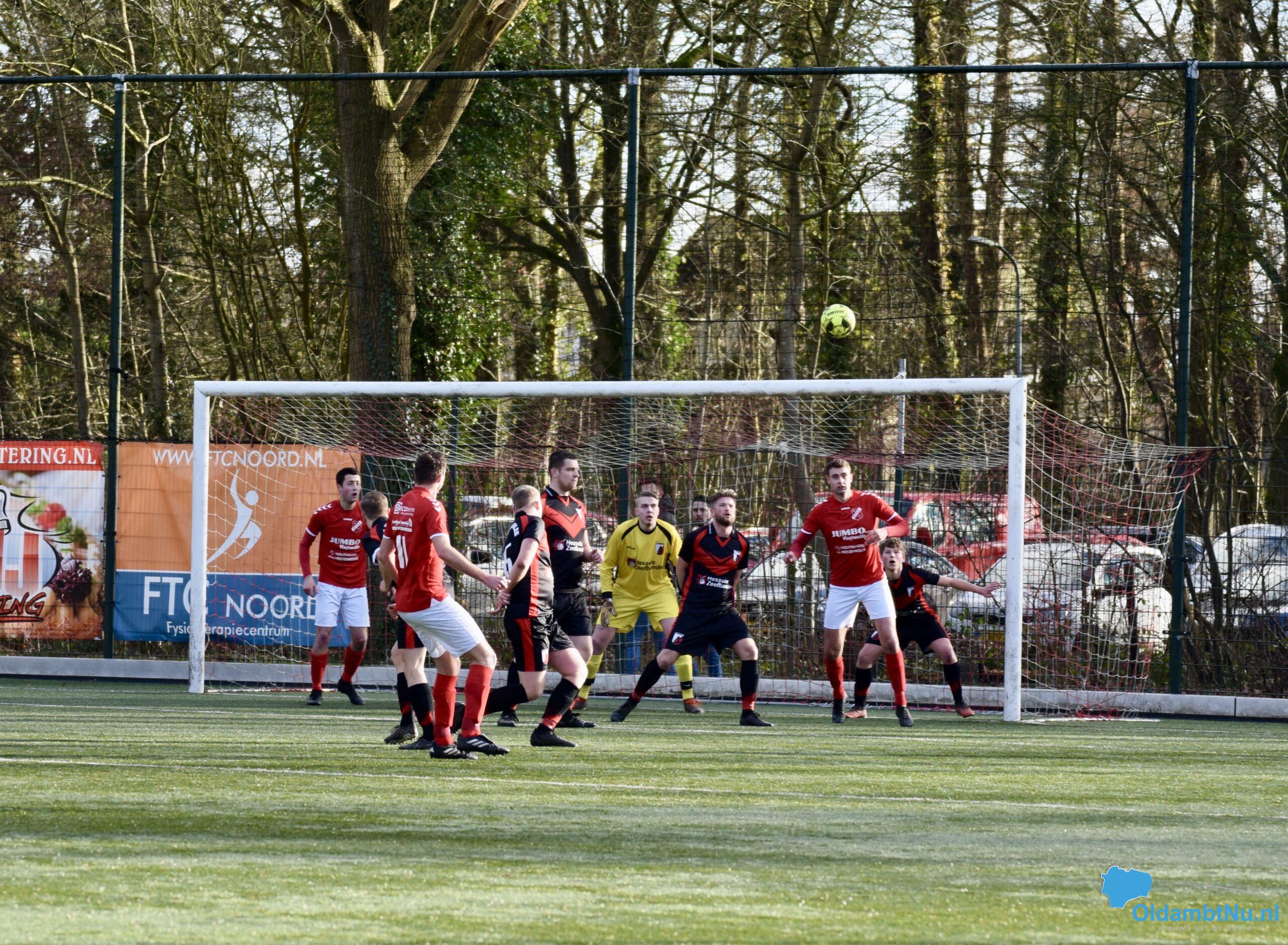 In de 15e minuut kwam Heiligerlee op voorsprong via een goed uitgespeelde aanval, afgerond door topscorer Gert Reininga. Niet veel later, in de 27e minuut, breidde de bezoekers hun voorsprong uit. Eerst maakte Erwin Aukes de 0-2, waarna Reininga met een afstandsschot de 0-3 op het scorebord zette. De eerste helft werd daarmee door Heiligerlee gedomineerd en afgesloten met een comfortabele marge.