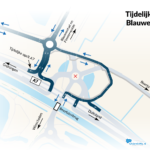 De tijdelijke situatie is nodig om de doorstroming van de Blauwe Roos aan te pakken. De rotonde krijgt dubbele rijstroken waardoor het verkeer sneller van de rotonde af is.