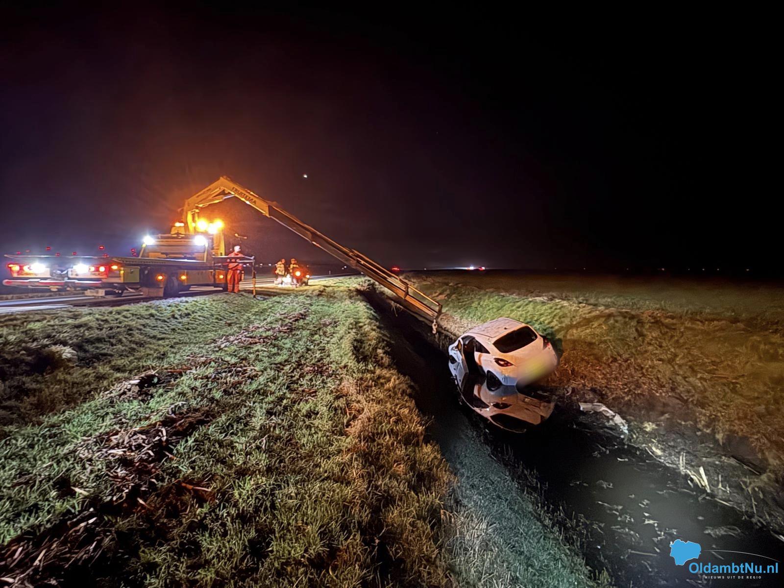 Auto raakt van de toerit A7 Scheemda en belandt in de sloot