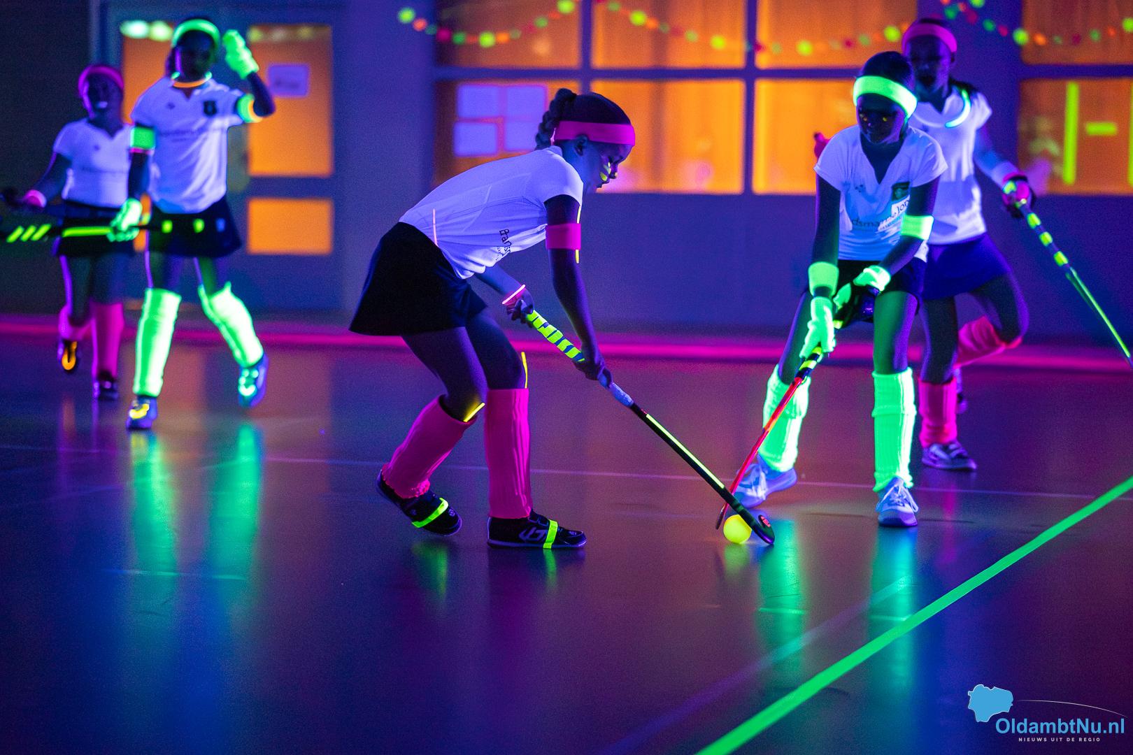 Finsterwolde – Hockey Club Winschoten organiseerde zaterdag 1 februari een uniek zaalhockeytoernooi in MFC De Hardenberg. De sporthal was omgetoverd tot een heuse glow-in-the-dark arena. De activiteitencommissie van HCW had hun best gedaan om alles er spectaculair uit te laten zien. Met lichtgevend tape waren de velden beplakt, de zaal was indrukwekkend versierd en er waren lichtgevende ballen.