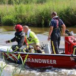 Een stuk van een dijk stond in brand. Oplettende passanten hebben de brandweer gewaarschuwd. De brandweer is bezig het vuur te bestrijden met vuurzwepen en water. Hierbij krijgen ze hulp van een brandweerboot die water met een pomp uit het naastgelegen kanaaltje haalt.