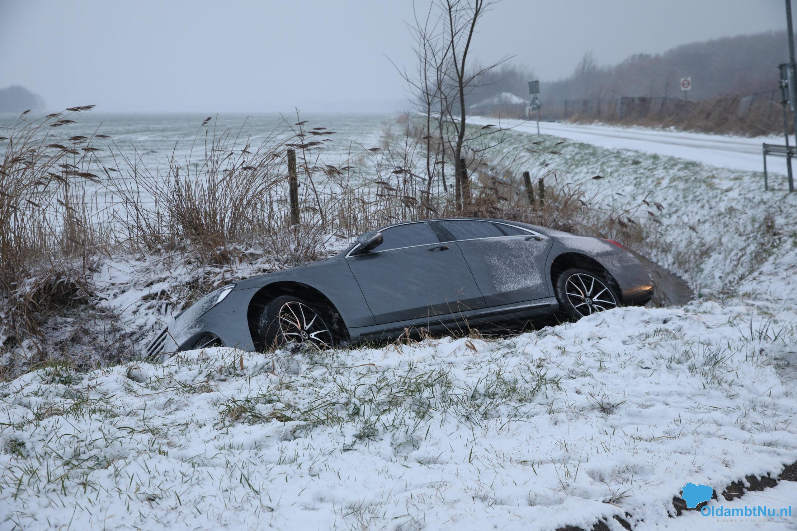 Franse automobilist belandt in sloot bij Bad Nieuweschans door gladheid (video)