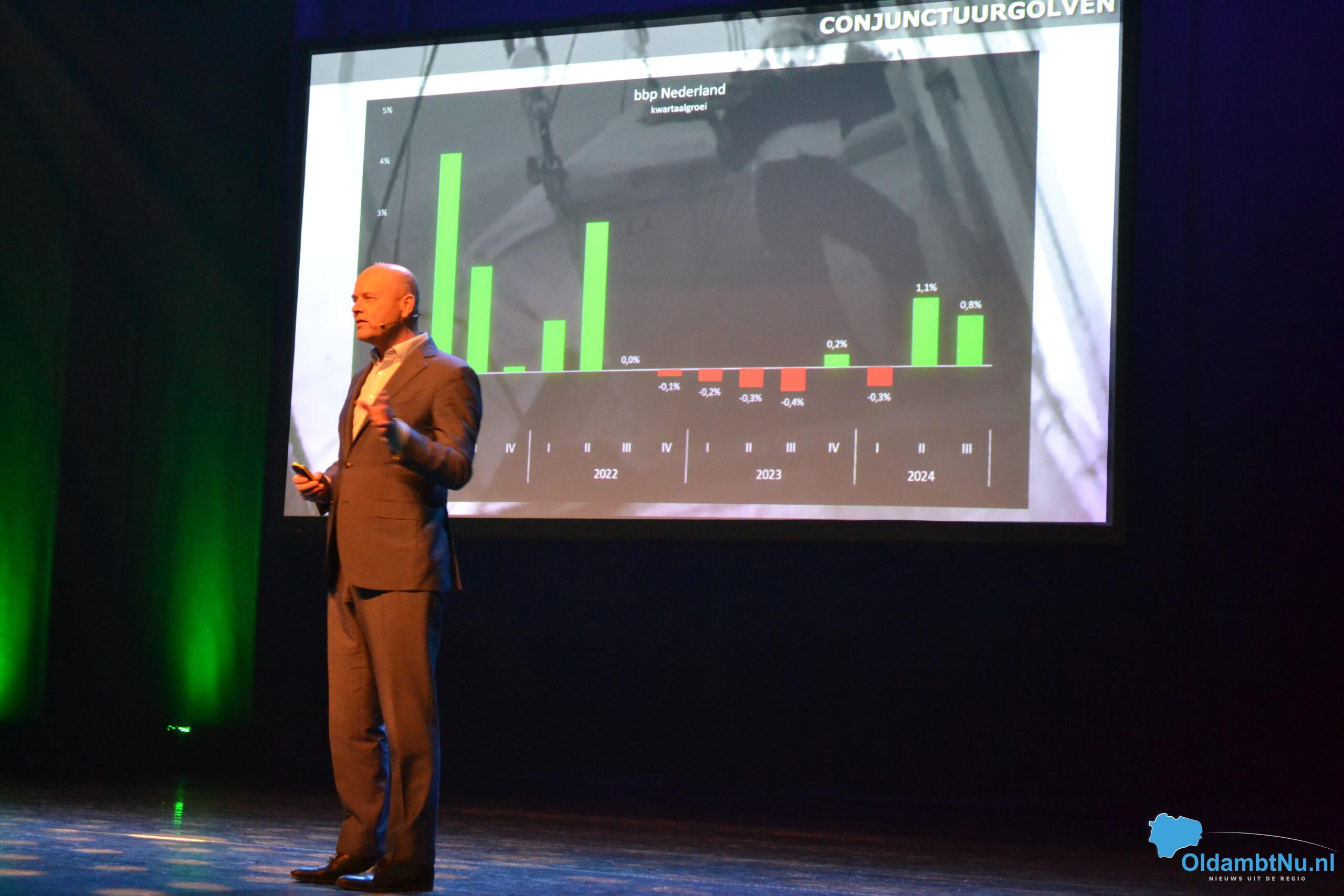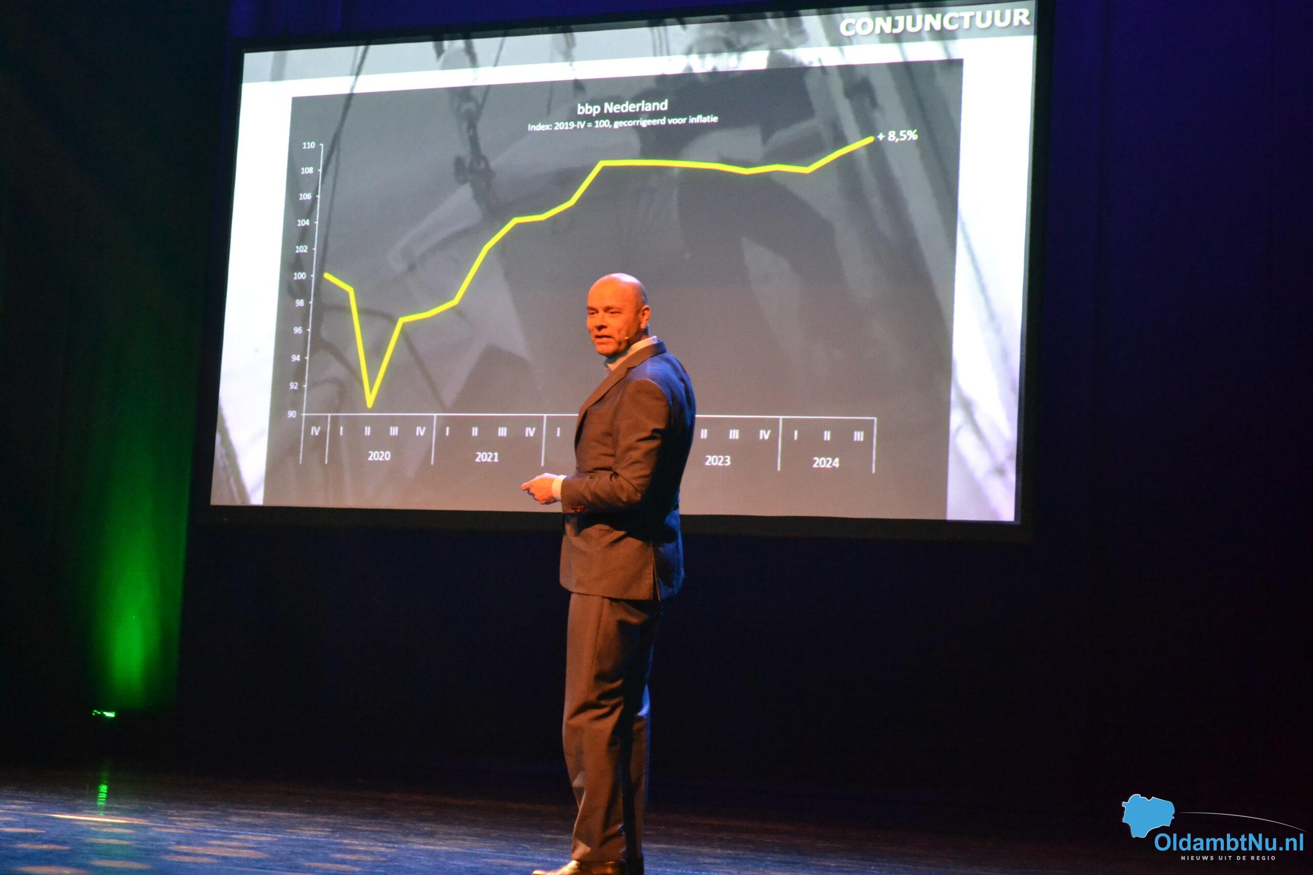 Mathijs is ingegaan op de economische ontwikkelingen die specifiek van invloed zijn op Oost-Groningen. Ook deelde hij zijn inzicht over hoe ondernemers kansen kunnen benutten in een veranderende markt en hoe de regio zich economisch kan blijven ontwikkelen. En dat in een tijd van behoorlijke krapte op de arbeidsmarkt.