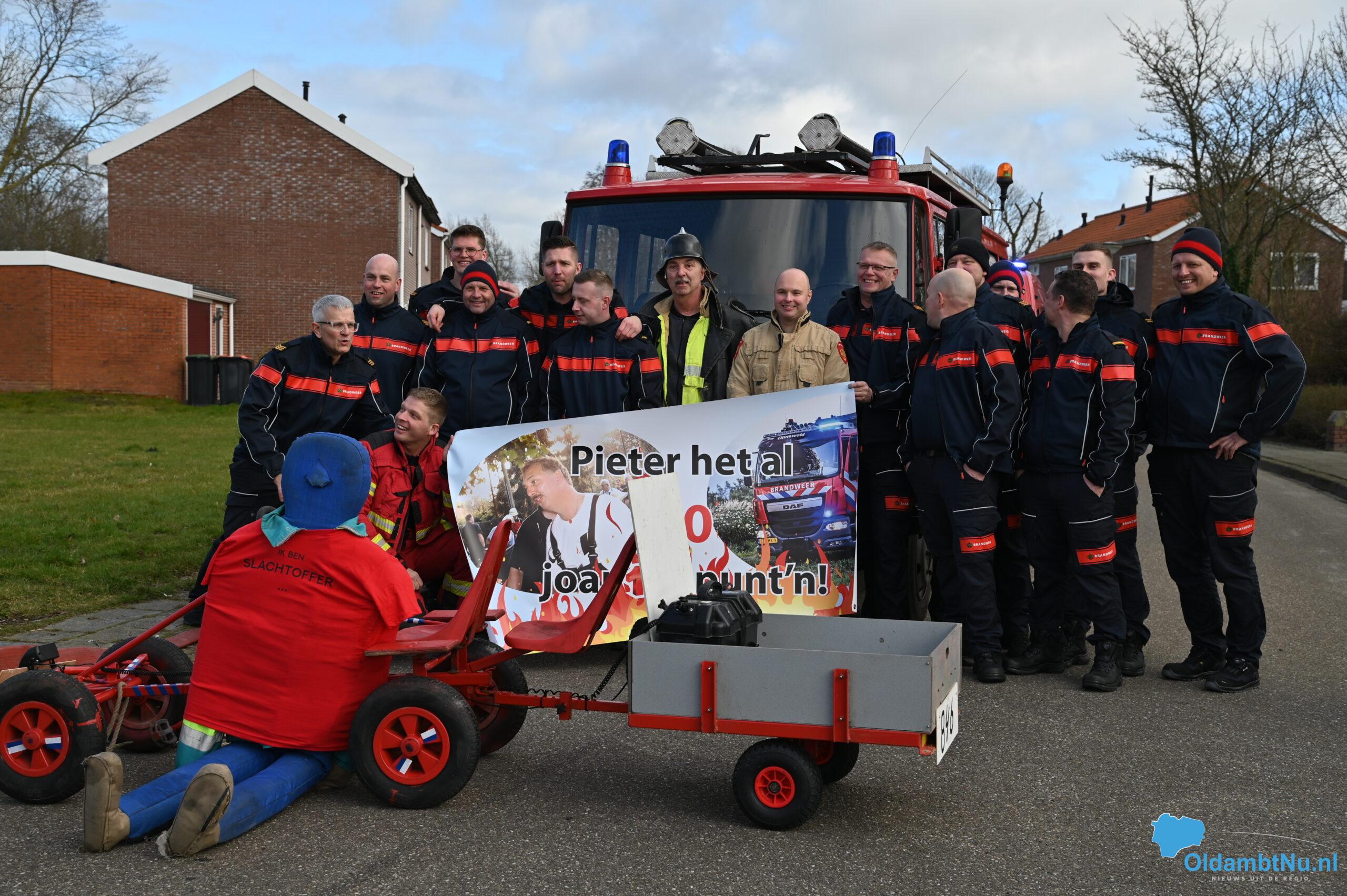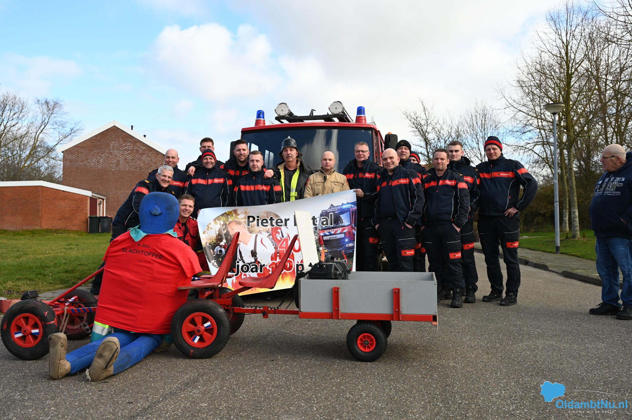 Ter ere van zijn 40-jarige jubileum werd Pieter vandaag door zijn collega’s en familie in het zonnetje gezet. De verrassing begon met een brandmelding die in scene was gezet, waarna hij onder begeleiding van collega’s op een skelter een rit door het dorp maakte. Aangekomen bij de kazerne werd uitgebreid stilgestaan bij zijn jarenlange inzet en toewijding aan de brandweer en de gemeenschap.