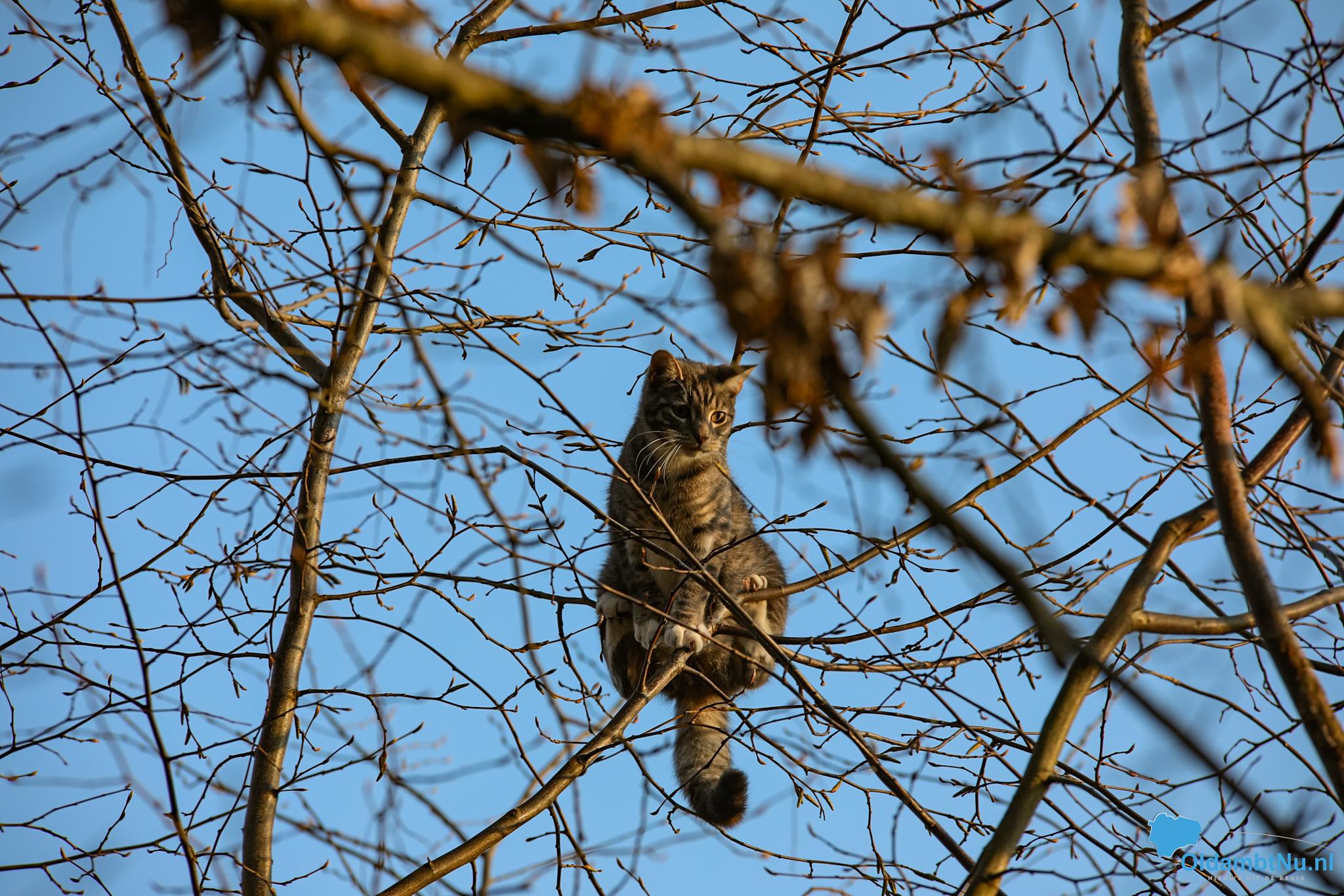 Volgens buurtbewoners zat de kat al 24 uur in de boom.