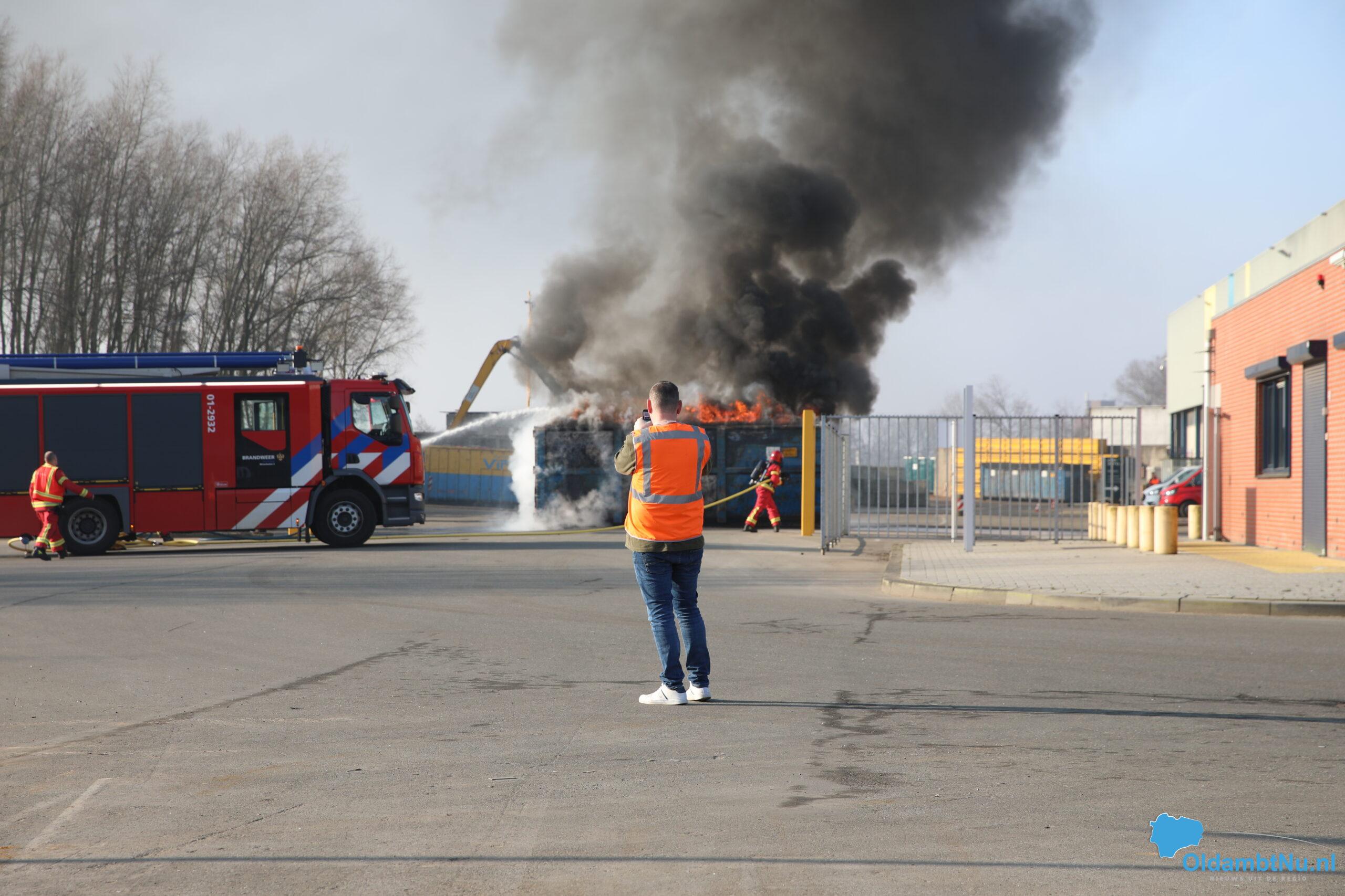 De container bleek gevuld met oud metaal en afval. Met behulp van een kraan werd de container geleegd, zodat de brandweer het vuur effectief kon bestrijden. De rook trok hoog de lucht in, waardoor de directe omgeving geen overlast ondervond.