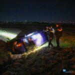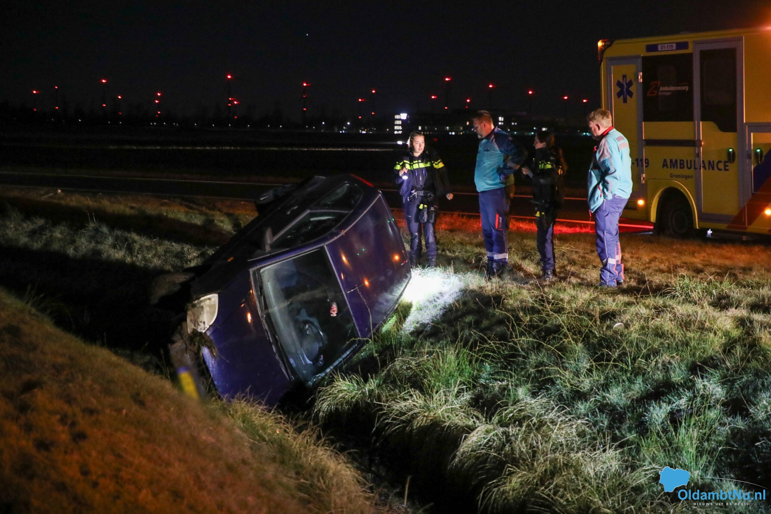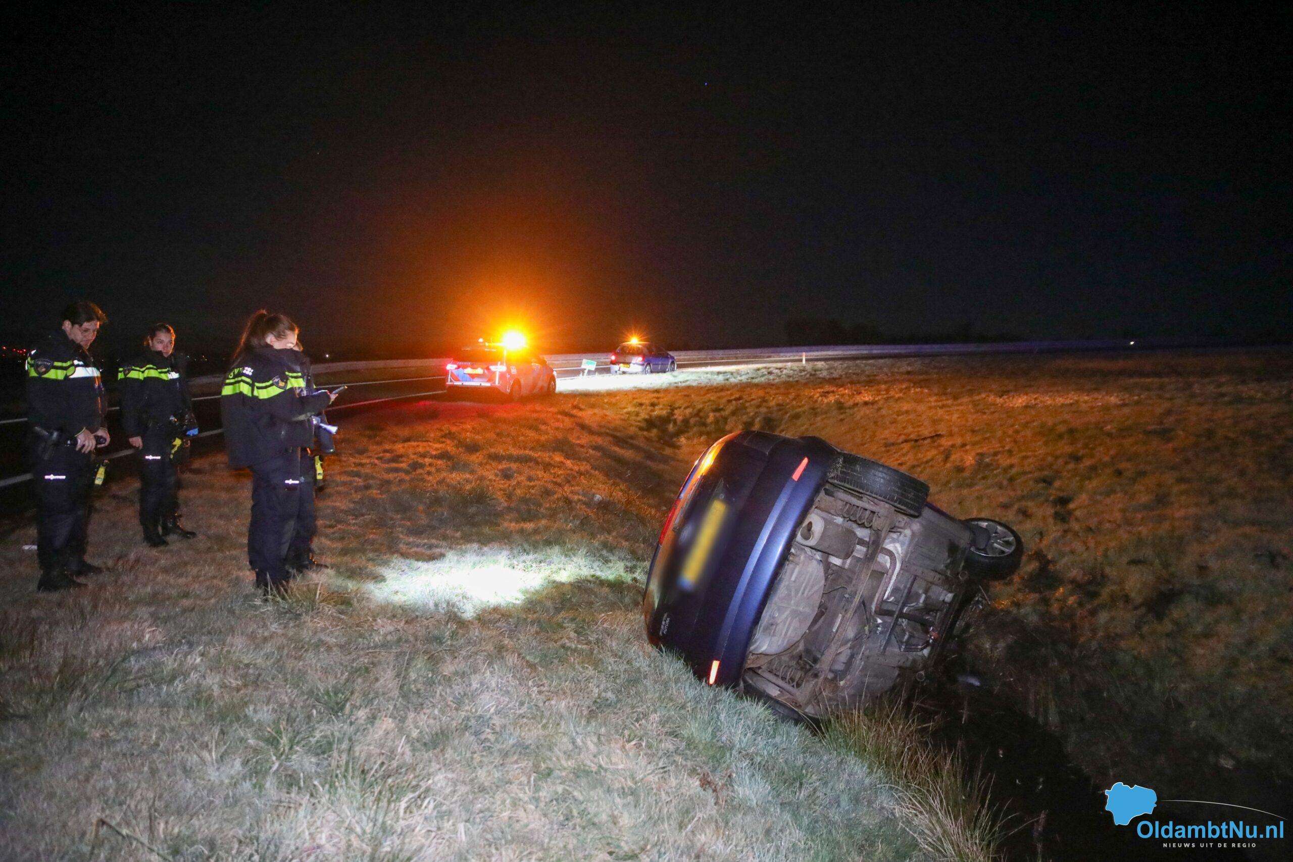 Een automobilist raakte door nog onbekende oorzaak van de weg en belandde met zijn voertuig op de zijkant, deels in de berm en deels in een kleine sloot. Bij aankomst van de hulpdiensten bleek de bestuurder spoorloos. Agenten hebben in de omgeving gezocht, maar troffen niemand aan.