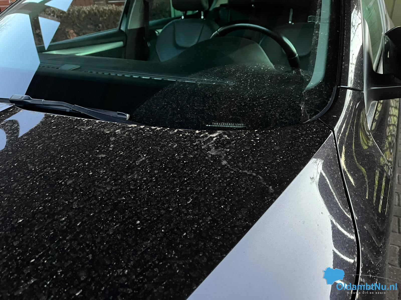 Sommige auto’s zijn al vies, maar dat is geen Saharastof. Verschillende soorten bomen produceren momenteel pollen en dit pollen is ook goed te zien, zeker op donkere auto’s’.