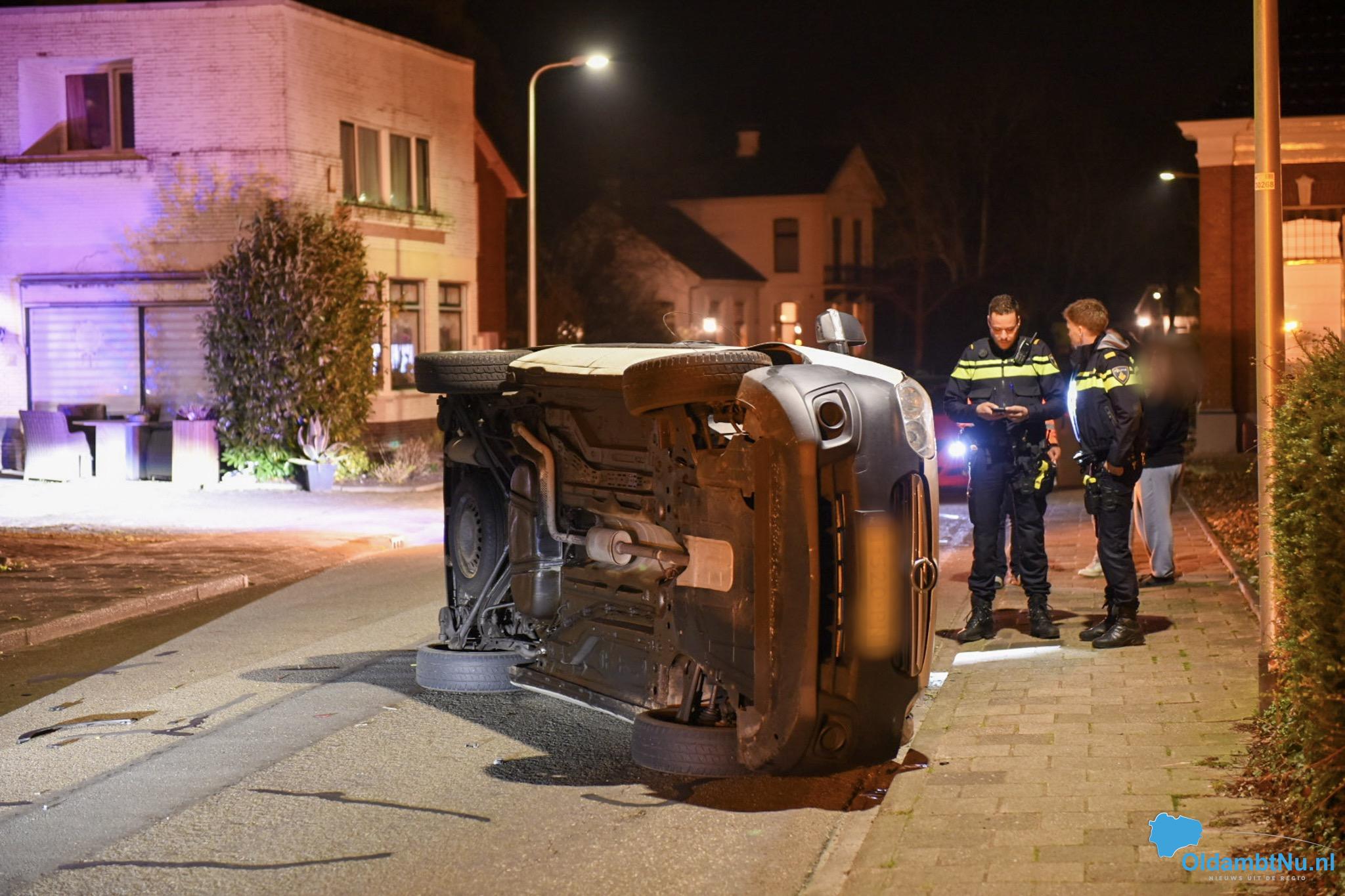 Scheemda – Op de Oosterstraat in Scheemda is zondagavond een auto op zijn kant terechtgekomen na een aanrijding met een geparkeerde auto.  De bestuurder bleef ongedeerd, maar volgens agenten ter plaatse is er een vermoeden dat hij onder invloed van alcohol was.