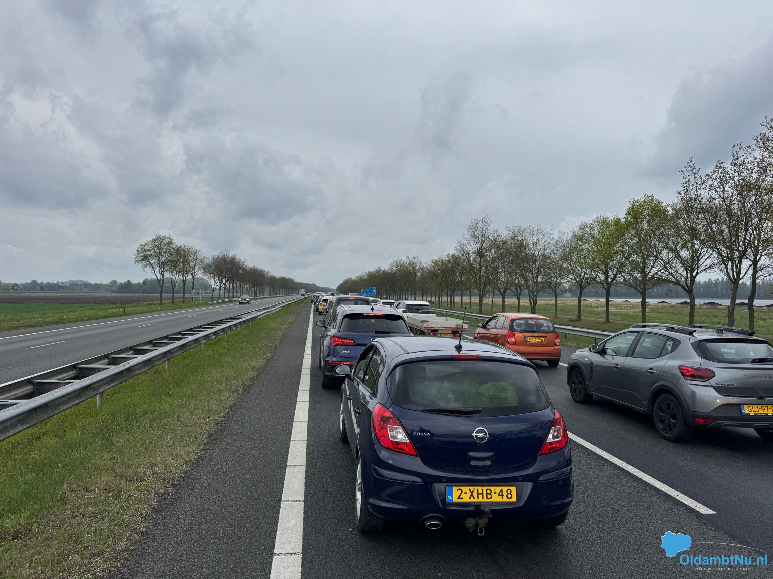 File door afsluiting op de A7 bij Sappemeer