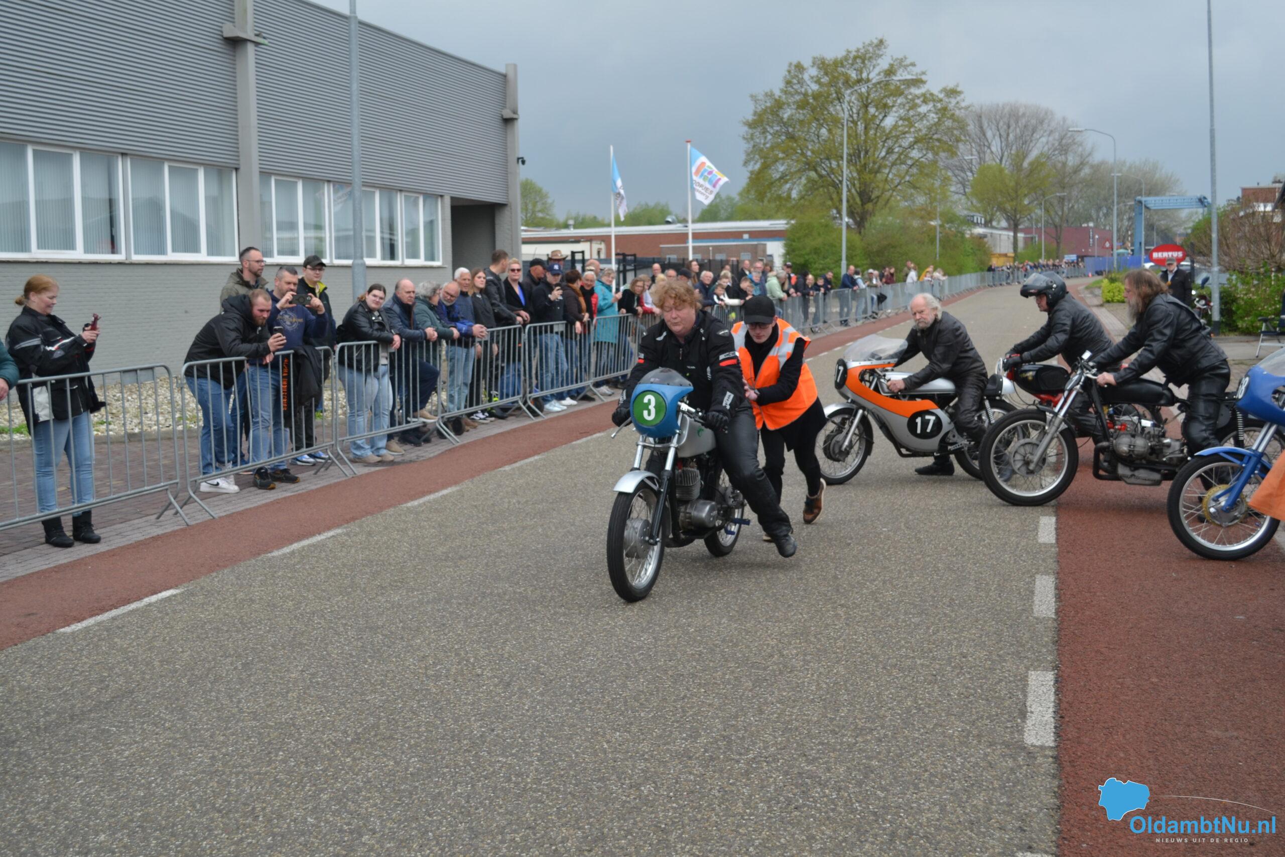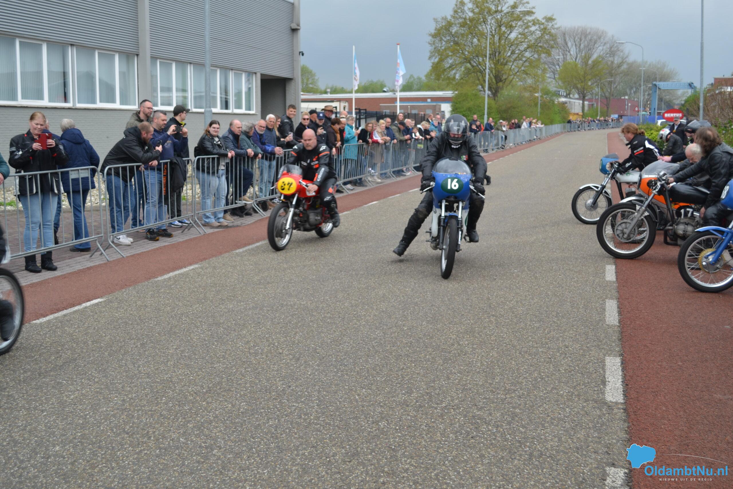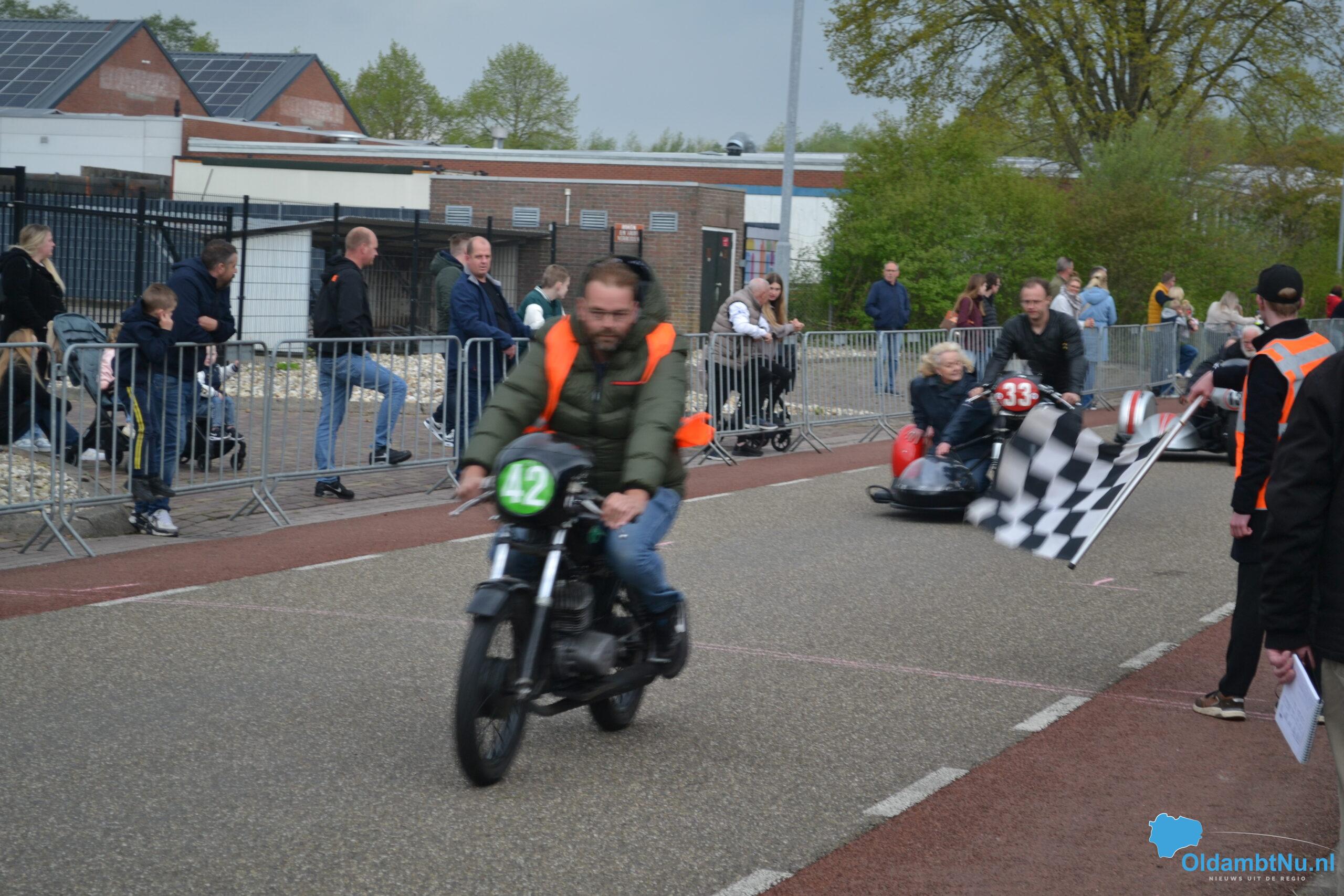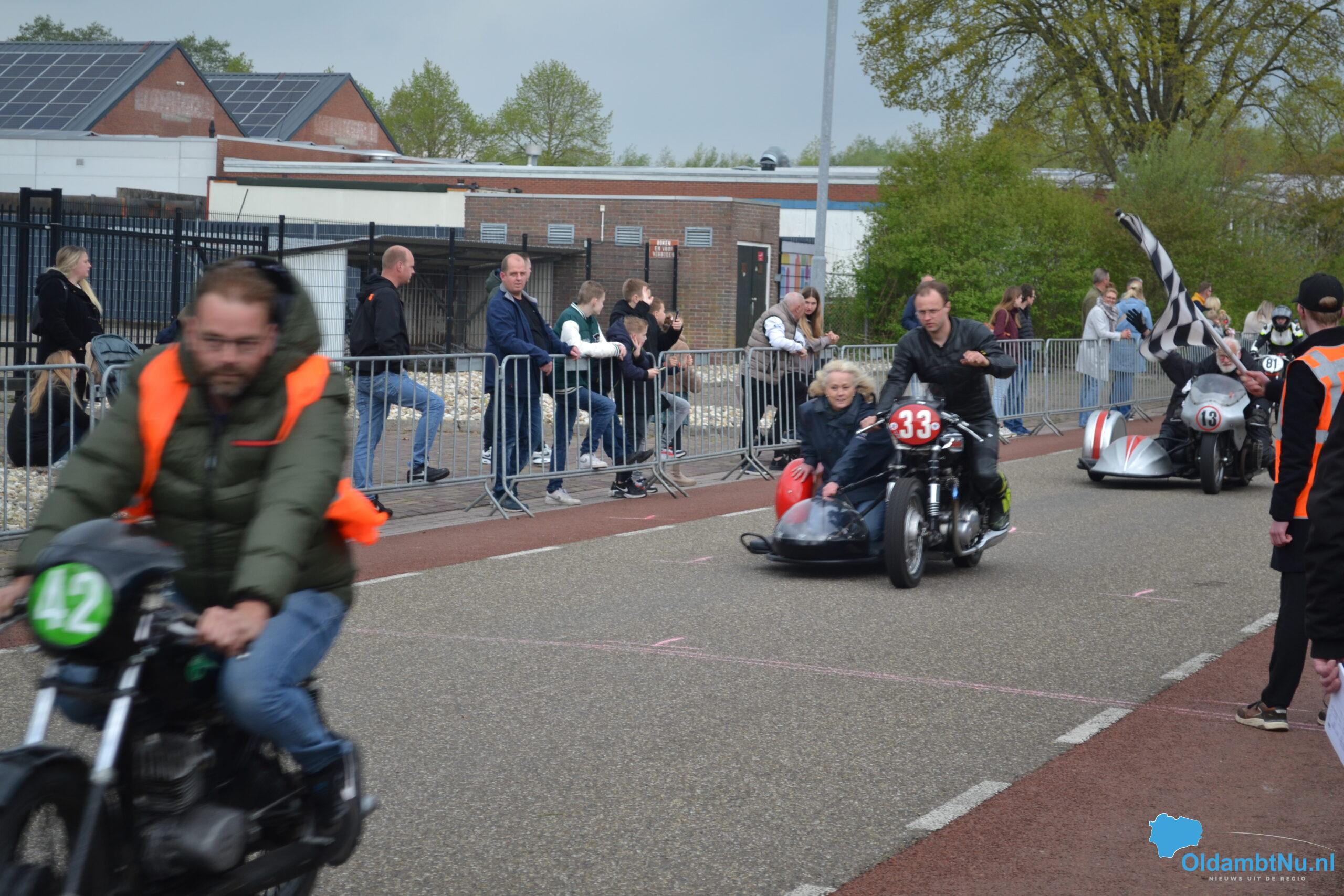 Later op de middag verschenen ook de zwaardere klassen aan de start, en als klap op de vuurpijl reed ook de zijspanklasse mee – een zeldzaam gezicht dat bij het publiek op veel enthousiasme kon rekenen. Kinderen hingen aan de hekken, volwassenen filmden en fotografeerden, en hier en daar werd luid gejuicht bij spannende inhaalacties.