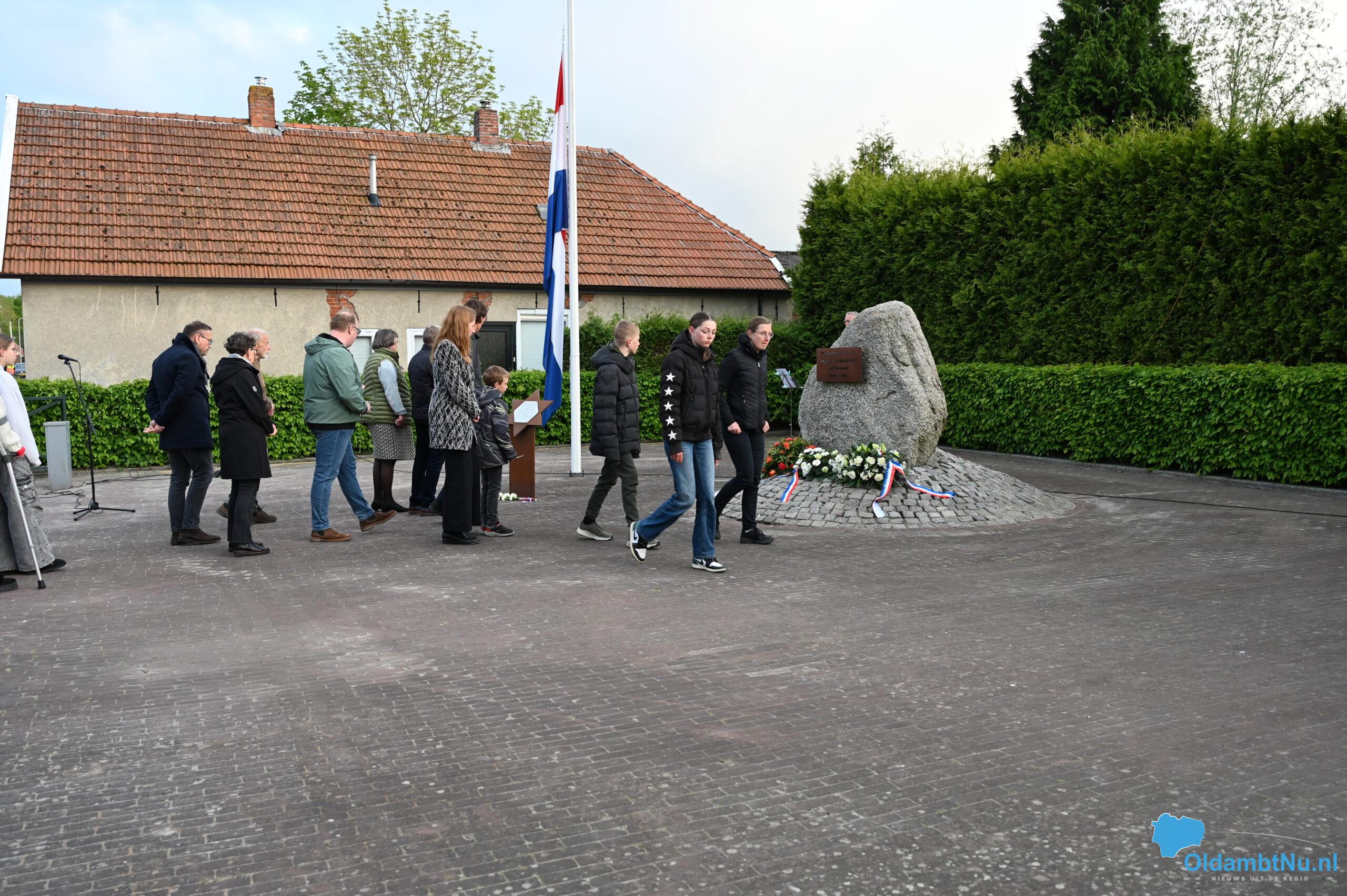 Oostwold – Zondagavond 4 mei kwamen inwoners van Oostwold bijeen voor de jaarlijkse dodenherdenking. De herdenking vond plaats bij het monument op de hoek van de Klinkerstraat en de Huningaweg.