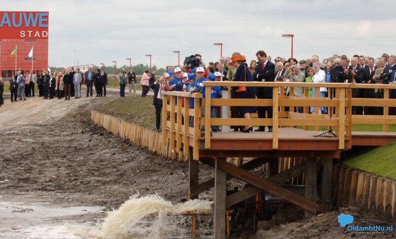 Blauwestad – Vandaag, 12 mei 2025, is het precies twintig jaar geleden dat toenmalig koningin Beatrix de kraan opende voor het vullen van het Oldambtmeer. Met deze symbolische handeling werd op 12 mei 2005 de basis gelegd voor Blauwestad, een nieuw woongebied op voormalig landbouwgrond in Oost-Groningen.