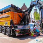 Tijdens het werk ontstonden technische problemen aan de zuigauto. Een servicemonteur werd opgeroepen om het defect te verhelpen. Tijdens zijn werkzaamheden in de bunker van het voertuig werd de zuigauto aangereden door een personenauto, die door een afzetting was gereden. Hierbij werd een verkeersregelaar geschept en bekneld geraakt onder het voertuig, dat bovendien een lpg-lekkage veroorzaakte.