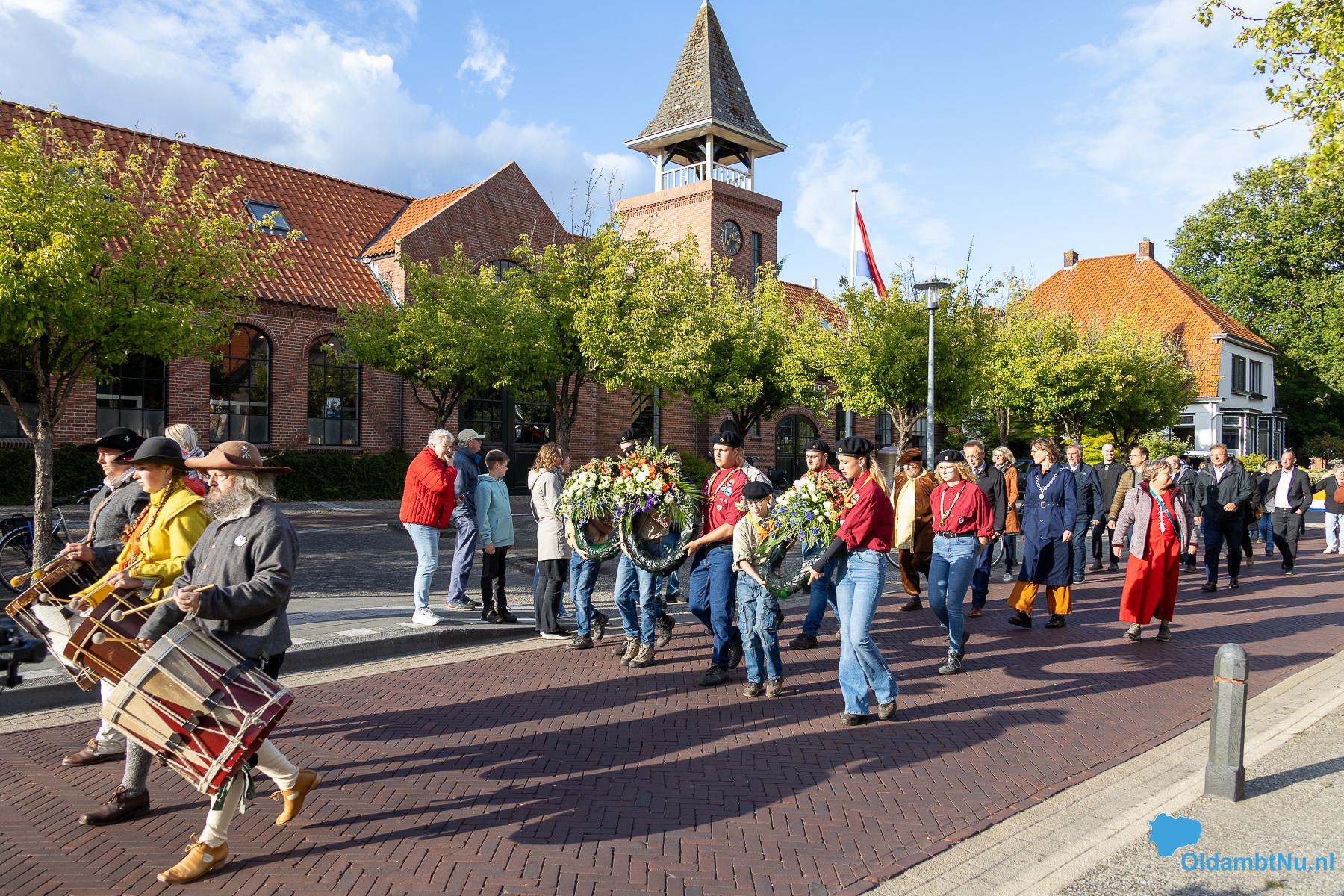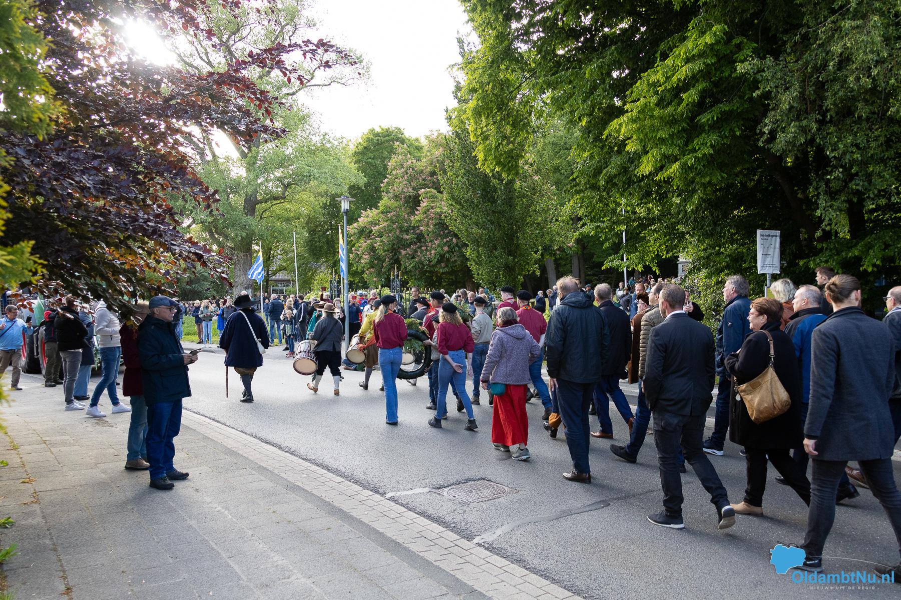 Na de kranslegging was er een moment van stilte waarna gezamenlijk het Wilhelmus werd gezongen en er een herdenkingsmedaillon werd uitgereikt aan de Commissaris van de Koning en de burgemeester. Met saluutschoten door de manschappen en een kanon werd de plechtigheid afgesloten en vertrok iedereen weer naar De Toekomst.