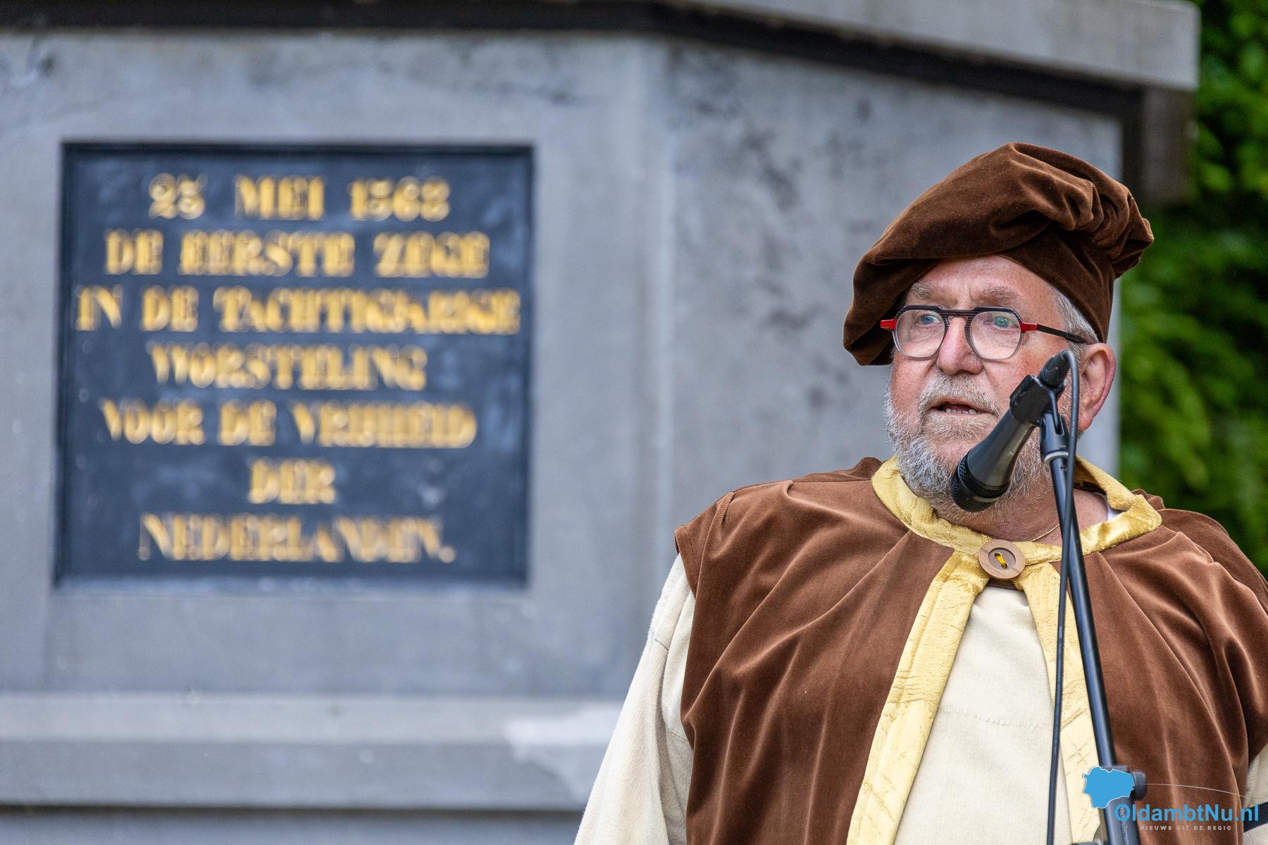 De datum waarop de 80-jarige oorlog startte en een belangrijk stuk geschiedenis werd geschreven. Op het veld voor het monument stonden de manschappen opgesteld en werden er woorden gesproken door Ton van de Klashorst als voorzitter van Stichting De Twee Lee’s , burgemeester Cora-Yfke Sikkema en commissaris van de Koning de heer René Paas.
