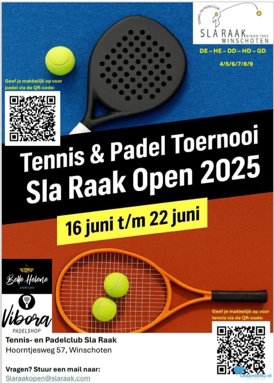 Als kers op de taart komt binnenkort de Sla Raak Open eraan: een groot regionaal toernooi voor zowel tennis als padel. De inschrijving is nog geopend en het motto is duidelijk: hoe meer zielen, hoe meer vreugd. Een prachtige kans om sport, competitie en gezelligheid samen te brengen.