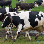 Koeien aan de Tweekarspelenweg dansend de wei in
