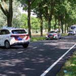 Vanwege de botsing is één rijstrook afgesloten. De politie is aanwezig om het verkeer te regelen en de situatie veilig af te handelen.