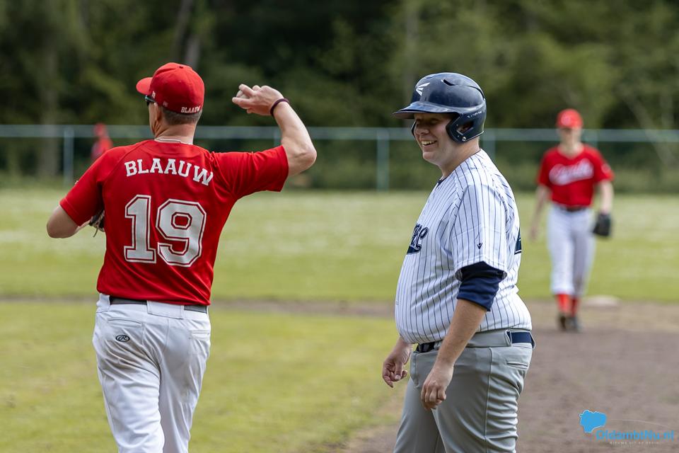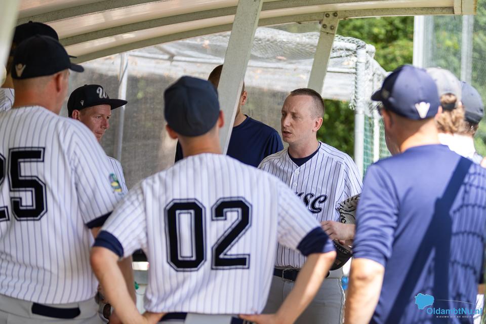 Met een 6-4 achterstand ging W.H.S.C. de laatste slagbeurt in. Bart begon sterk met een honkslag en stal direct het tweede honk. Door twee veldfouten scoorde het vijfde punt en kwamen er twee lopers op de honken. Na een drieslag en geraakt werper stonden de honken vol. Met twee uit was het aan Flo om de wedstrijd te beslissen — en dat deed hij. Met een rake tik sloeg hij twee punten binnen en bezorgde zijn team de overwinning: 7-6.