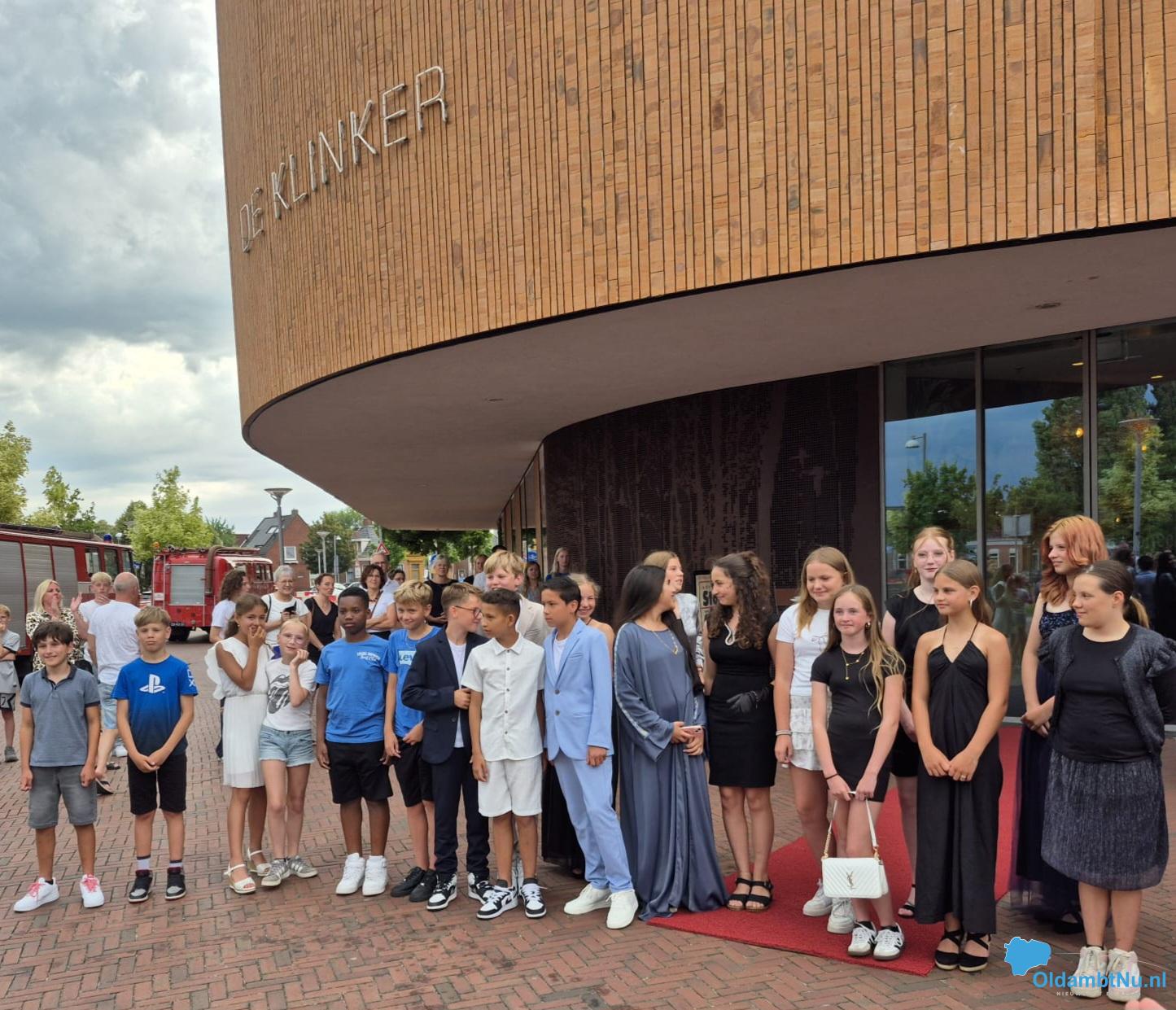 De leerlingen werden naar de Klinker vervoerd in prachtige oude brandweerauto’s. Allemaal waren ze gekleed volgens de dresscode en ze zagen eruit als echte filmsterren op de rode loper! Na de film was het tijd voor een drankje in het Theatercafé van de Klinker. Het was een mooie afsluiter van een leuke schooltijd!!