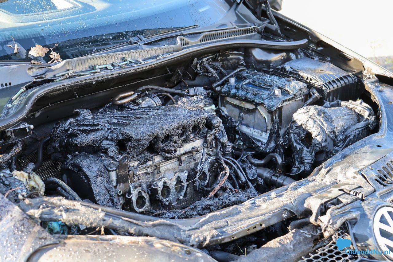 De brandweer heeft het motorcompartiment verder afgeblust en de accupolen los gehaald. Na controle op hotspots met de warmtebeeldcamera kon de brandweer retour naar de kazerne. De auto heeft forse schade.