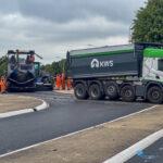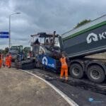 De asfaltmachine is momenteel bezig met de deklagen en ook de belijning wordt al aangebracht. De riolering is inmiddels aangelegd en het grootste deel van het grondwerk is afgerond. Komend weekend wordt er doorgewerkt aan resterende grondwerkzaamheden, mede om op schema te blijven. De oplevering van het gehele project staat gepland voor 25 juli.