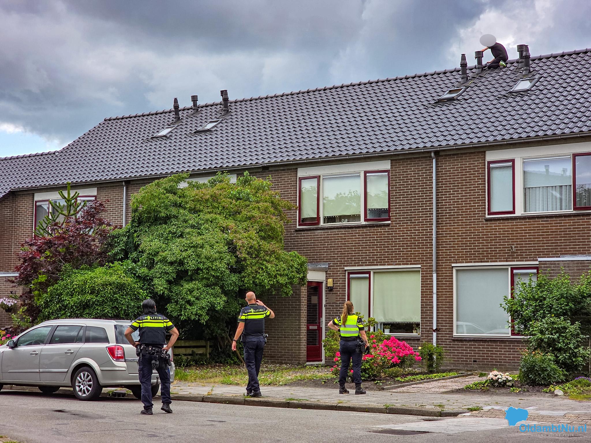 Winschoten – Dinsdagmiddag is aan de Sleedoornweg in Winschoten een man op het dak van een woning geklommen toen agenten hem wilden aanhouden, waarvoor is tot heden niet bekend.