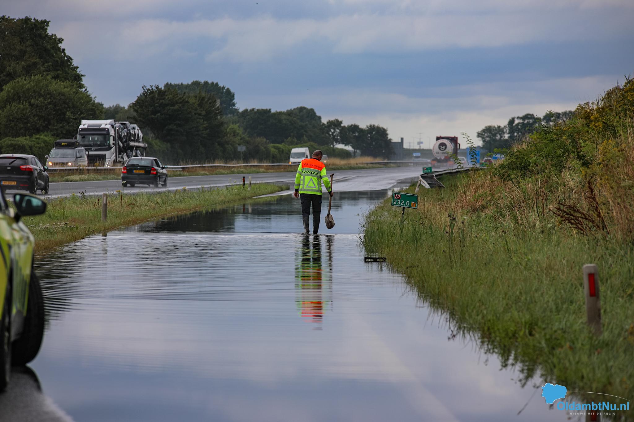 Hevige regenval zorgt voor afsluiting oprit A7 bij Heiligerlee