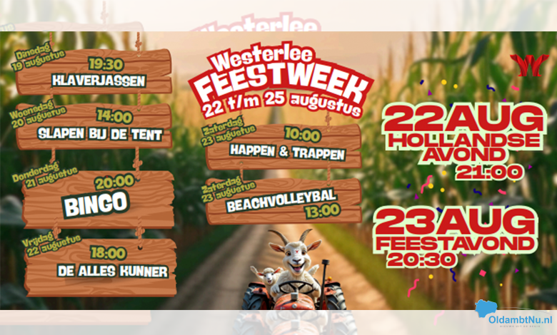 Westerlee – Westerlee maakt zich op voor een feestelijke week vol activiteiten. Van dinsdag 19 tot en met zaterdag 23 augustus staat het dorp in het teken van de jaarlijkse feestweek, met een gevarieerd programma voor alle leeftijden.