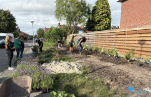 Een werkgroep van bewoners met groene vingers werd samengesteld en deze groep heeft hieraan een aantal avonden gewerkt om de perk te egaliseren en te vullen.