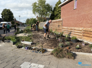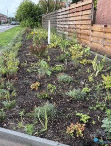 Helemaal af is het nog niet…. na de zomer komen er nog 2 kleinere plantenperken en een paadje in het glooiende grasveld in de Kastanjehof . Al met al nu al een zeer geslaagd project dat niet alleen de straat opvrolijkt en voor biodiversiteit zorgt, maar wat op deze manier ook de mensen met elkaar verbindt.