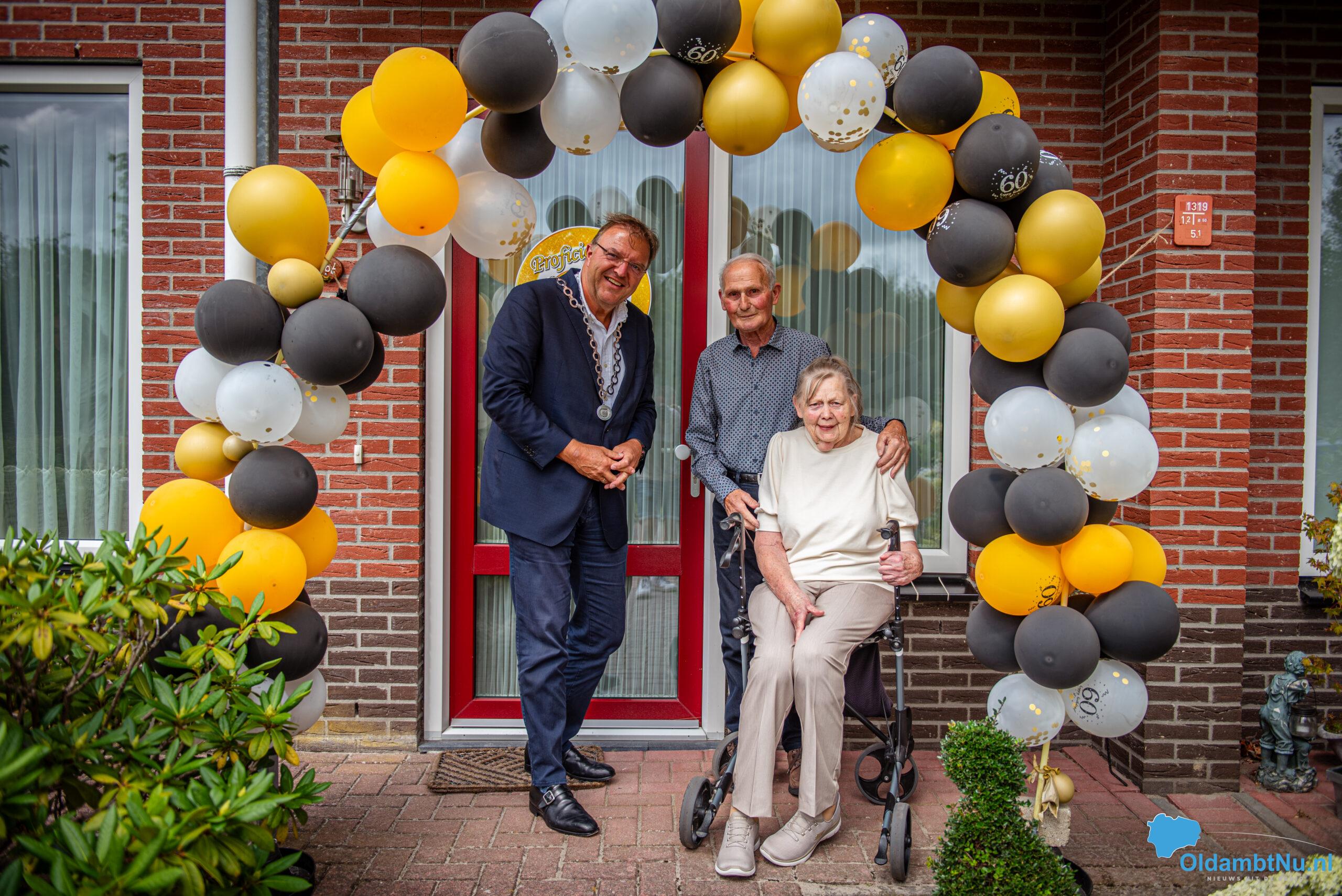 Nieuwolda – Afgelopen woensdag 6 augustus vierde het echtpaar Jakob (86) en Sienie (83) de Groot-Moorlag uit Nieuwolda hun 60-jarig huwelijk. Wethouder Erich Wünker bracht het diamanten bruidspaar een bezoek om hen namens de gemeente Oldambt te feliciteren.