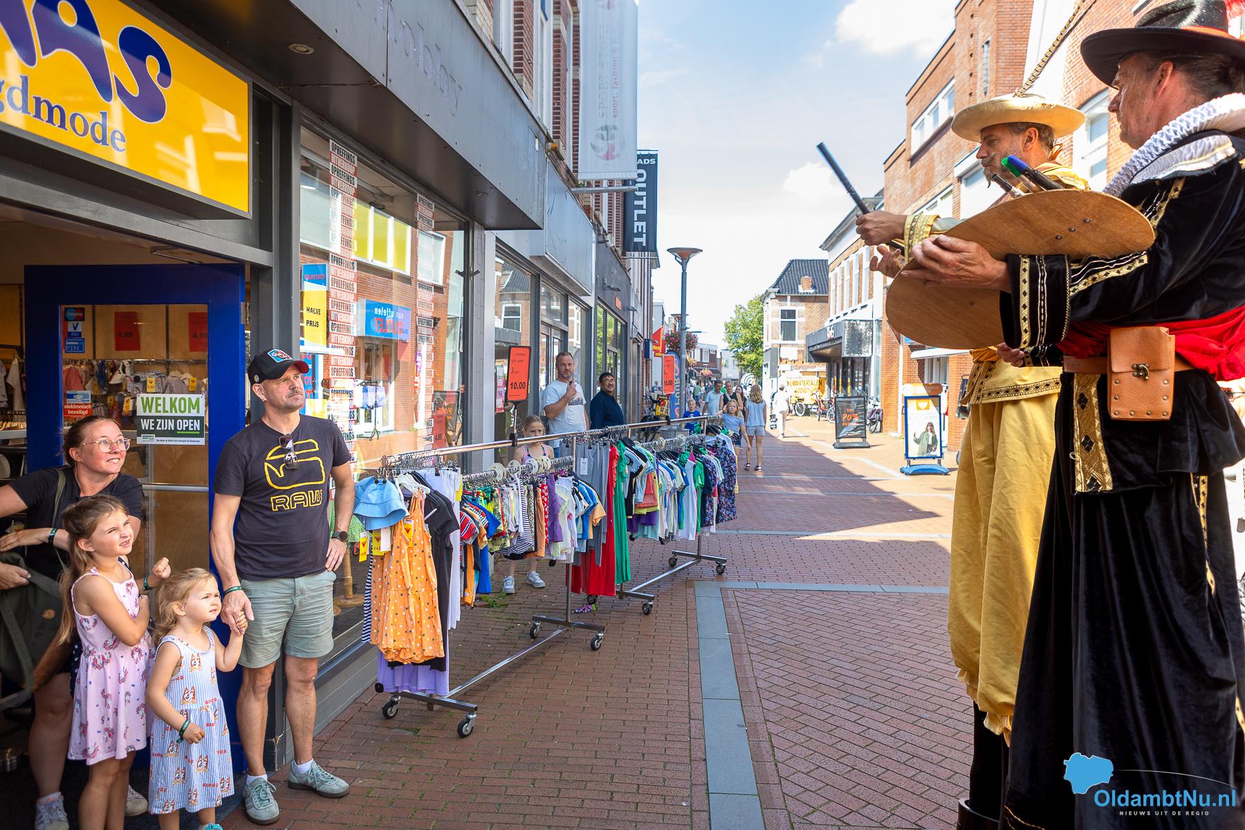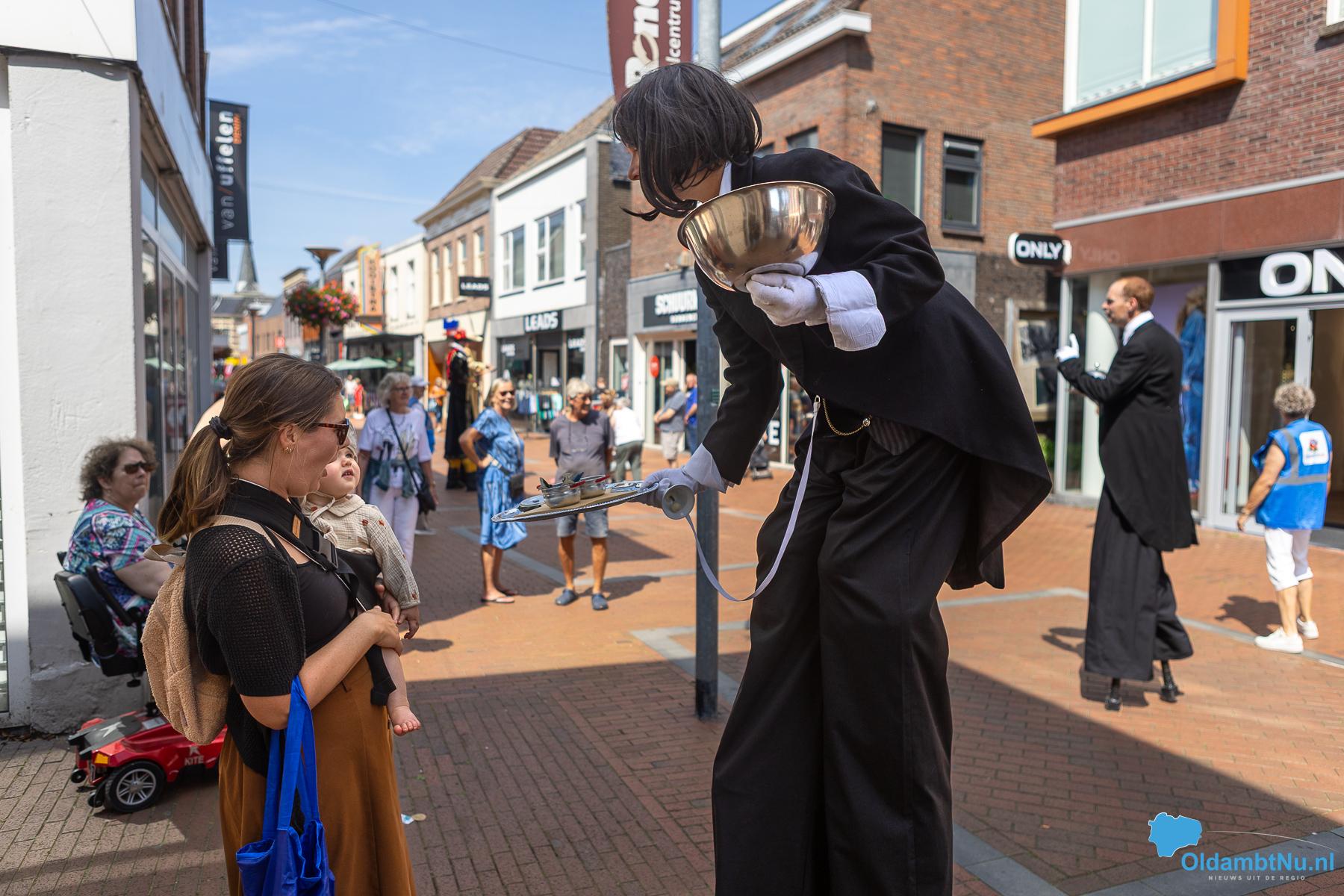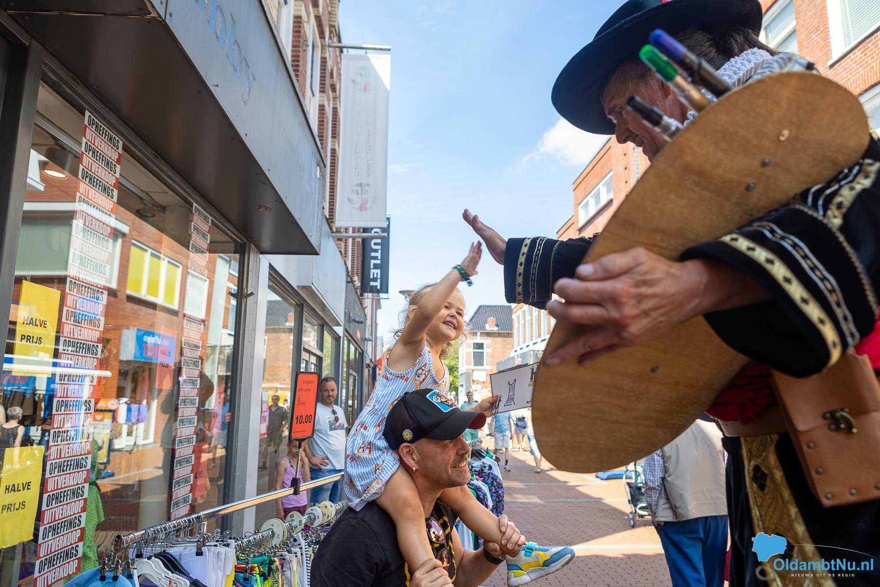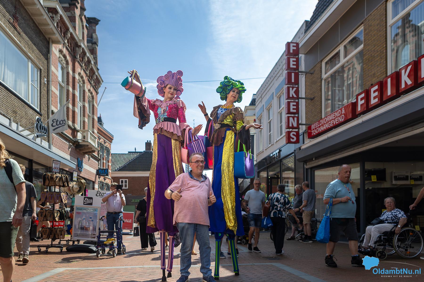 Winschoten – Onder een stralende zon was het zaterdag druk in het winkelhart van Winschoten. Naast wat inkopen doen en winkels bezoeken, wist men de terrassen ook goed te vinden, want deze waren allemaal goed bezet. Naast deze zaken werd het winkelend publiek getrakteerd op een lopend theater op hoog niveau.