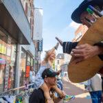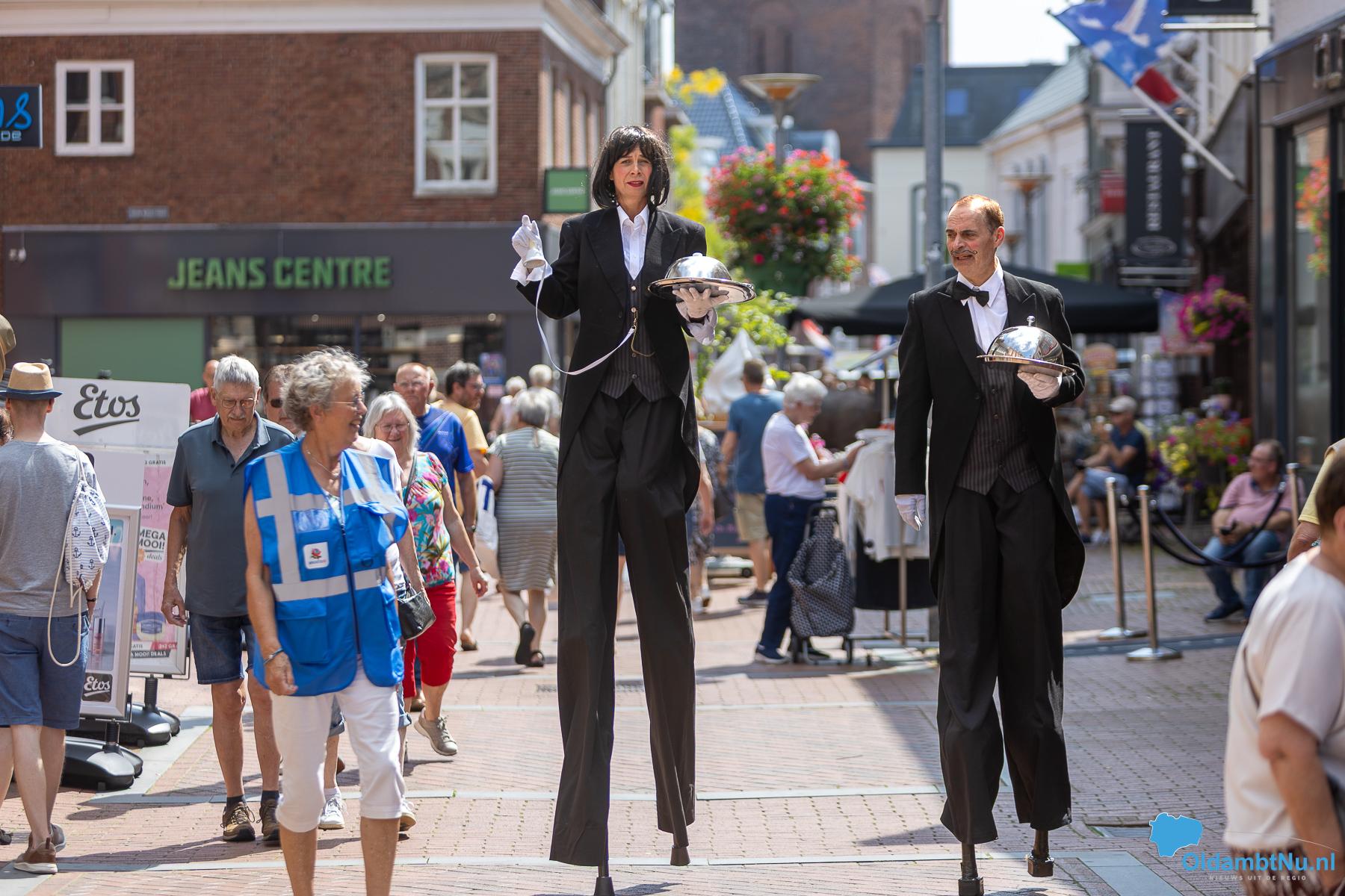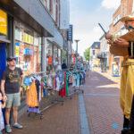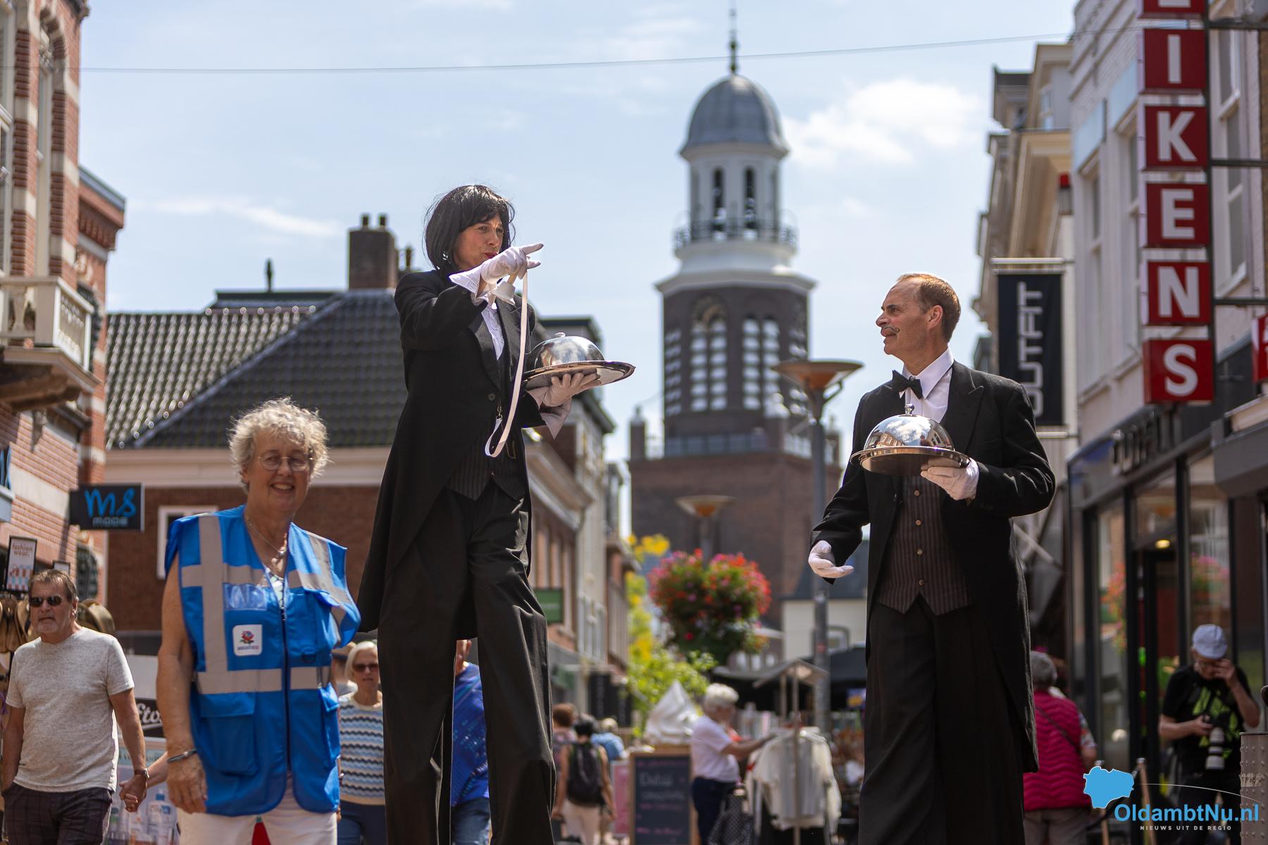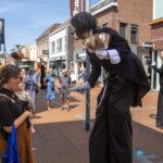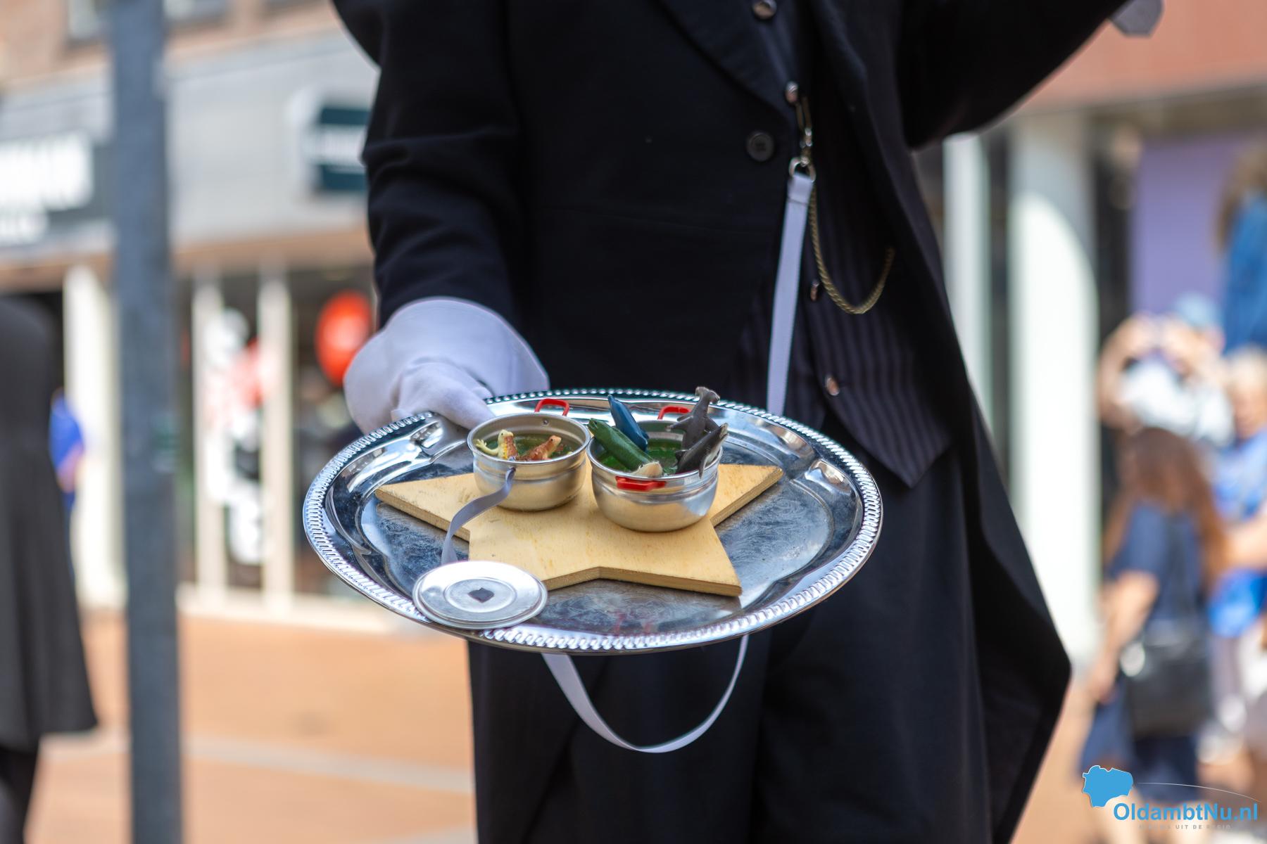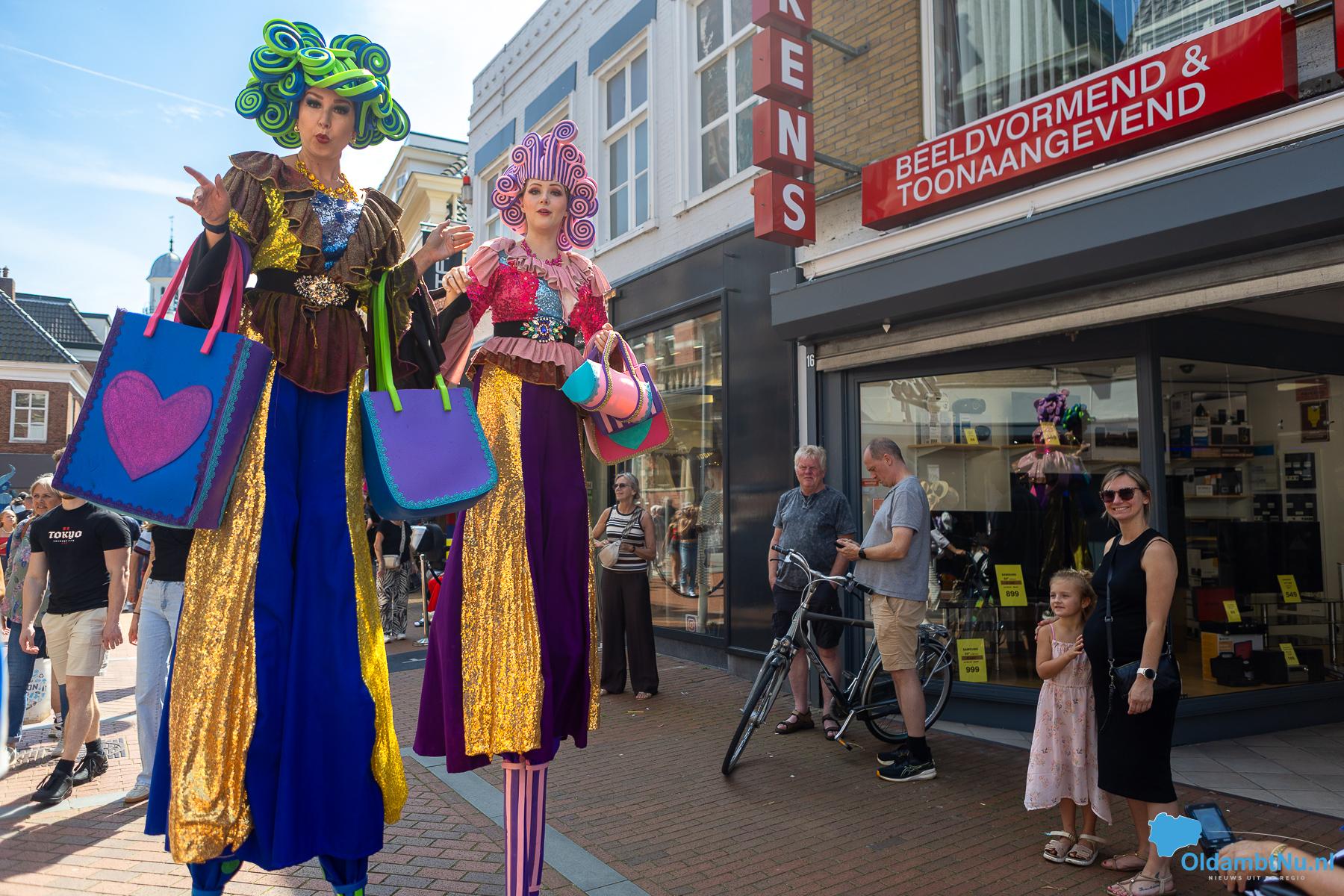 Winschoten – Onder een stralende zon was het zaterdag druk in het winkelhart van Winschoten. Naast wat inkopen doen en winkels bezoeken, wist men de terrassen ook goed te vinden, want deze waren allemaal goed bezet. Naast deze zaken werd het winkelend publiek getrakteerd op een lopend theater op hoog niveau.