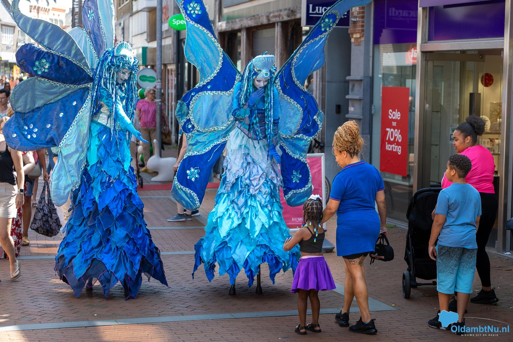 Maar liefst 12 stelten-theaterartiesten namen bezit van het centrum, tijdens een spectaculaire show vol fantasie, kleur en verwondering. De Langestraat en aangrenzende winkelstraten werden een levend decor met theatrale hoogstandjes voor jong en oud.