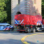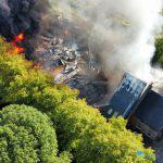 De Brandweer zal nog lang bezig zijn met nablussen en de kraan gaat daar bij assisteren om zo alles af te blussen.