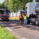Midwolda – Op de N362 (Gereweg) bij Midwolda heeft dinsdagmiddag rond 15.50 uur een ongeval plaatsgevonden tussen een personenauto en een vrachtwagen. De twee voertuigen raakten elkaar aan de zijkant, waardoor de tank van de vrachtwagen beschadigd raakte en begon te lekken.