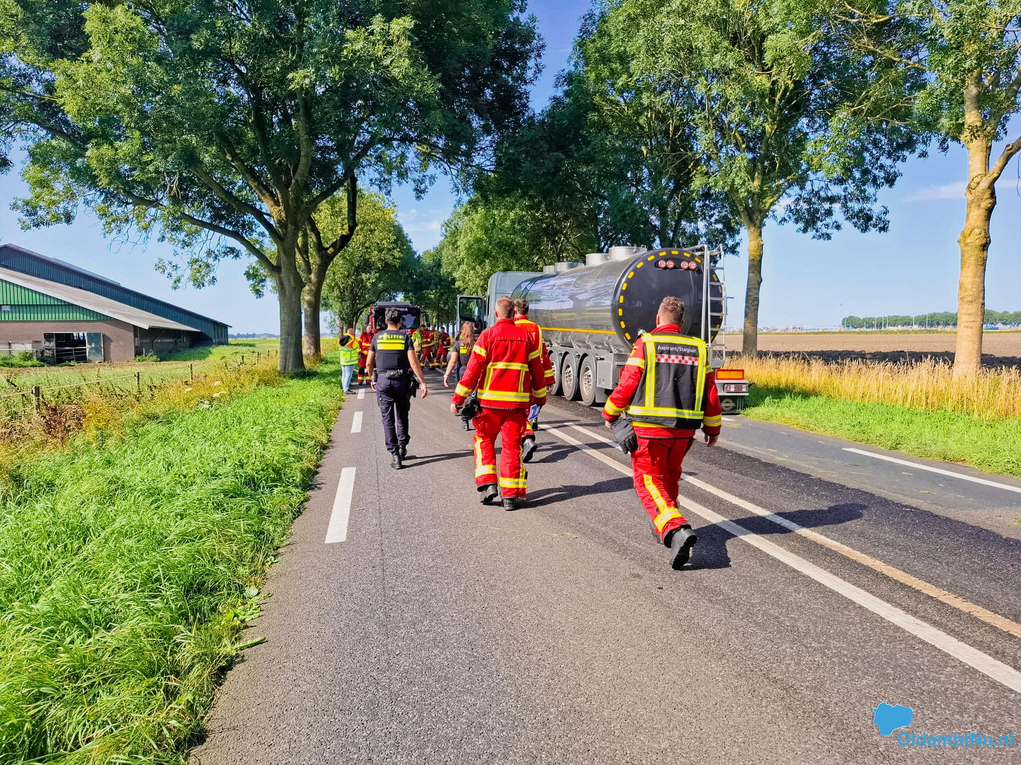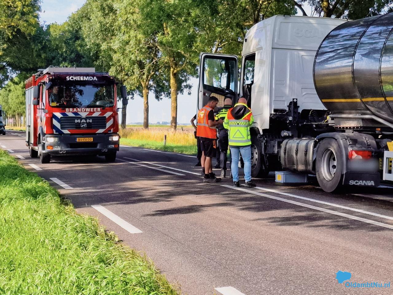 Midwolda – Op de N362 (Gereweg) bij Midwolda heeft dinsdagmiddag rond 15.50 uur een ongeval plaatsgevonden tussen een personenauto en een vrachtwagen. De twee voertuigen raakten elkaar aan de zijkant, waardoor de tank van de vrachtwagen beschadigd raakte en begon te lekken.