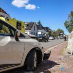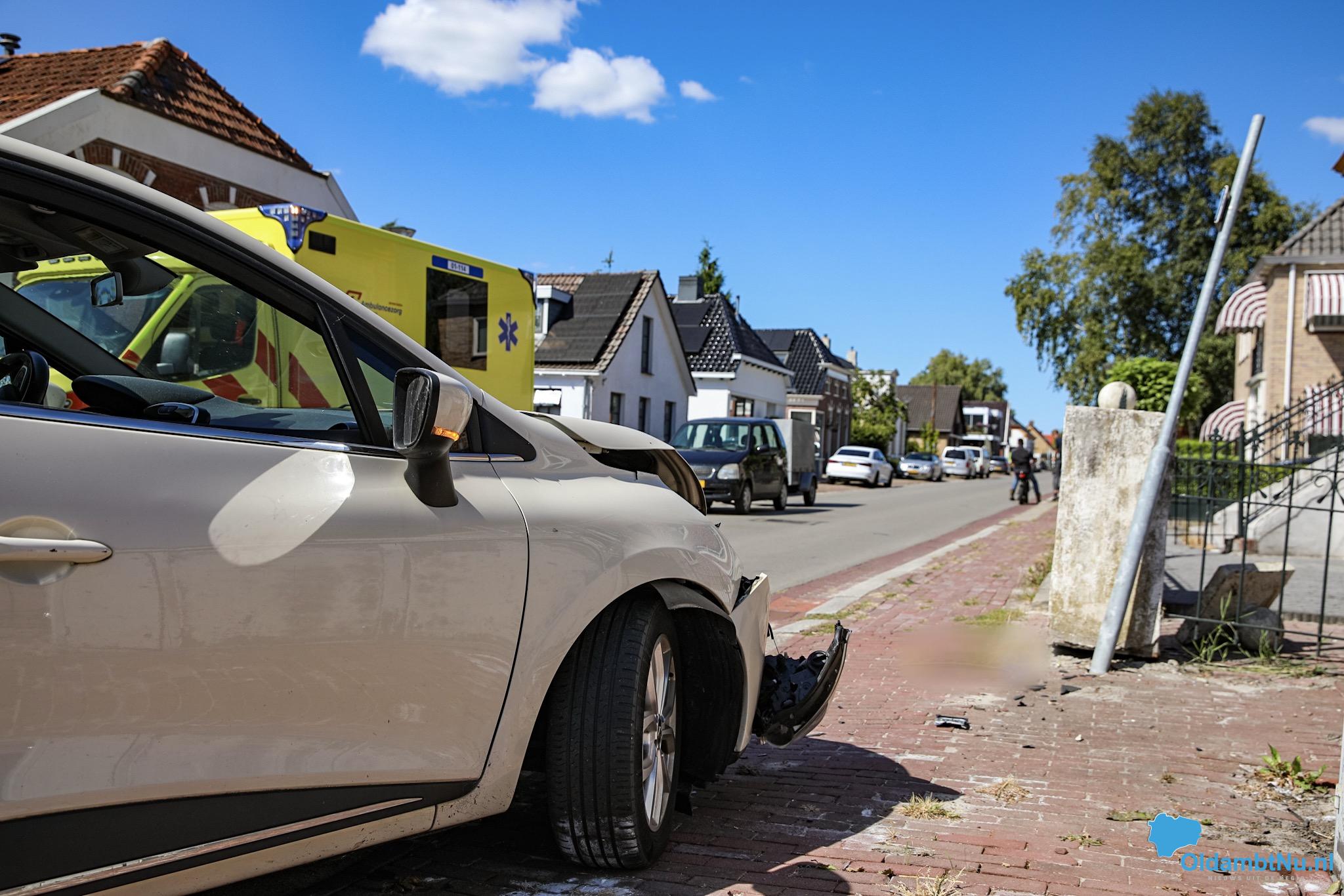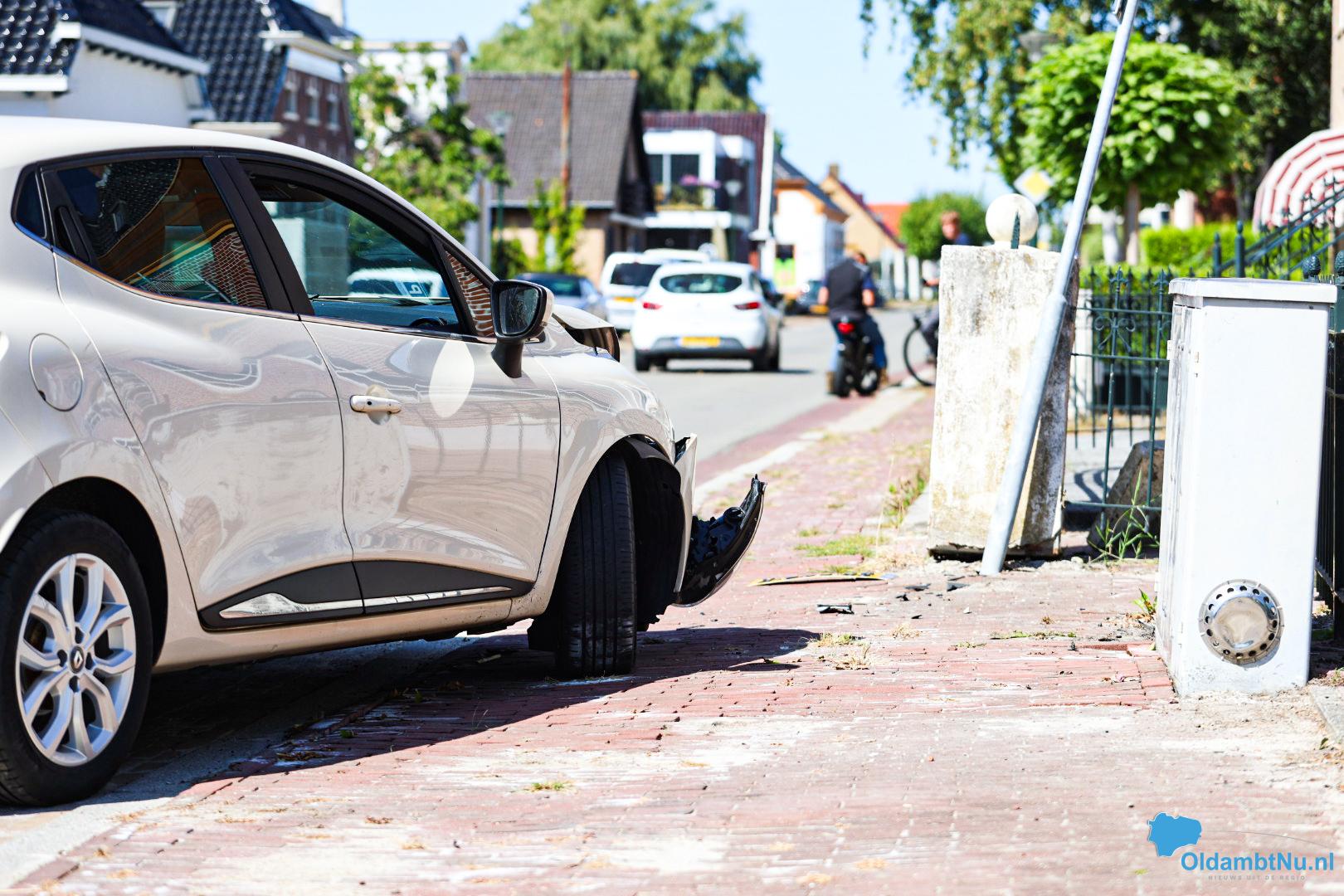 De auto liep forse schade op en kwam tot stilstand tegen een betonnen paal van een hekwerk. Hoe het ongeval kon gebeuren, is nog niet duidelijk. Hulpdiensten kwamen ter plaatse en een berger heeft het voertuig afgesleept.